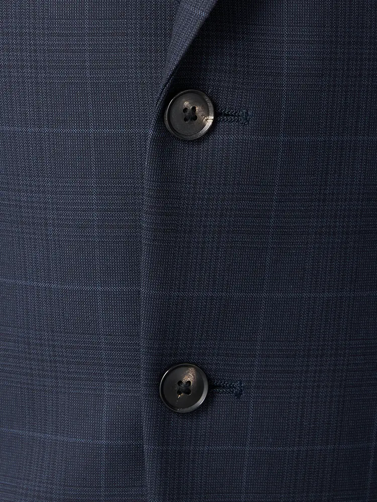 毛芯仕上げのラペルや本水牛のボタンなど、ディテールにもこだわりが感じられます。