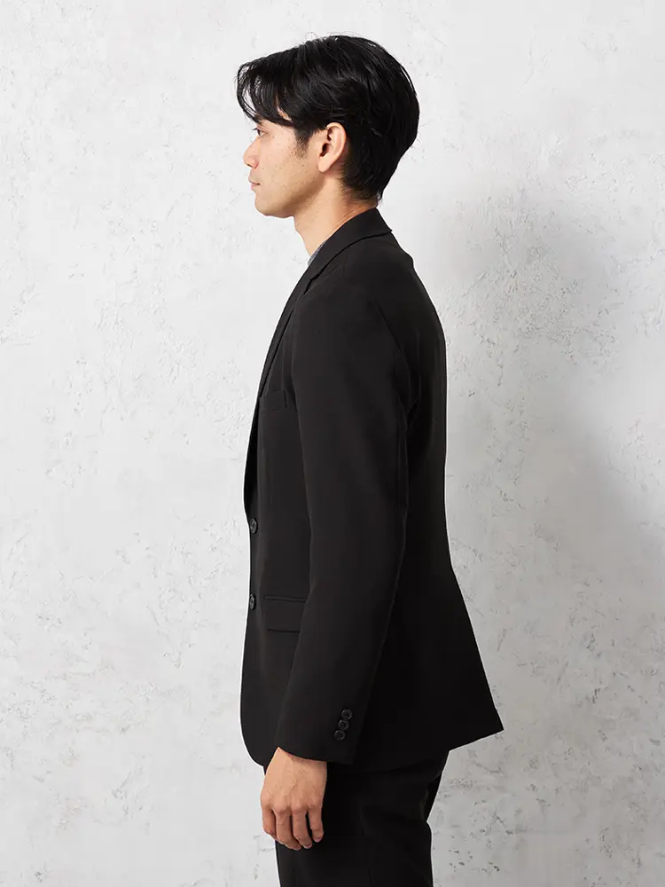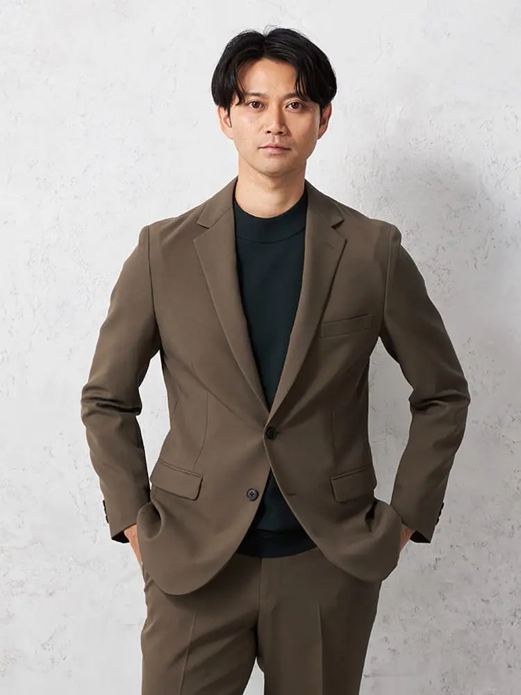 ストレッチやウォッシャブル機能もあり、オンオフ問わず、装いをシャープに引き締めたいシーンに最適な一着。