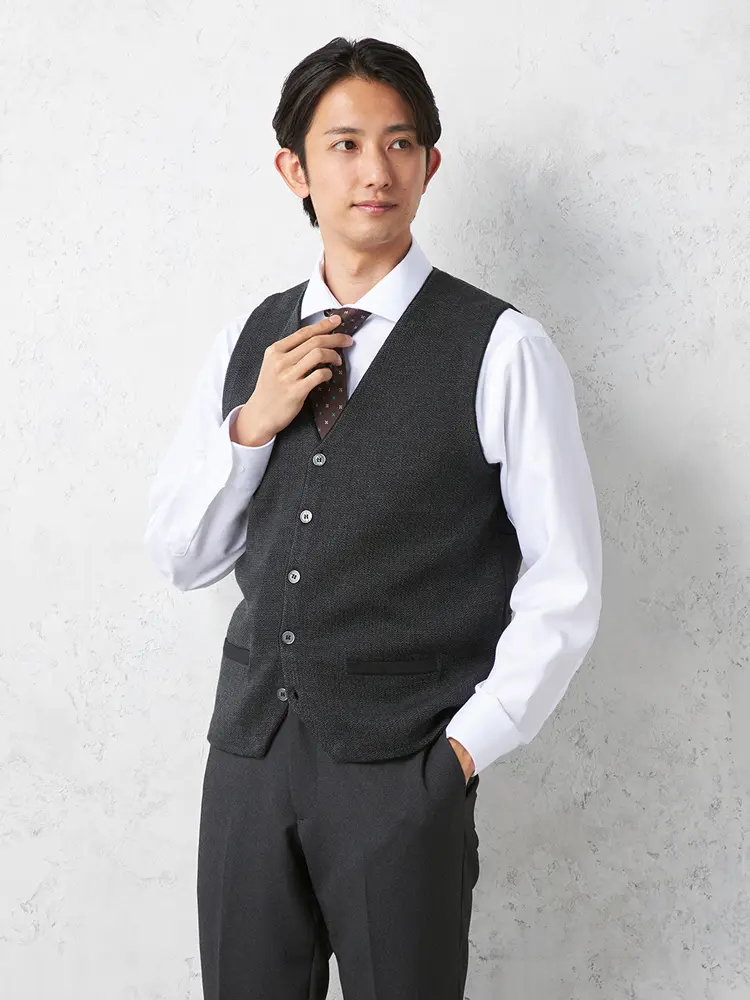 【ウォッシャブル】ミラノリブ前割れベスト放電抗ピリング無地ベストリッケンバッカー秋冬