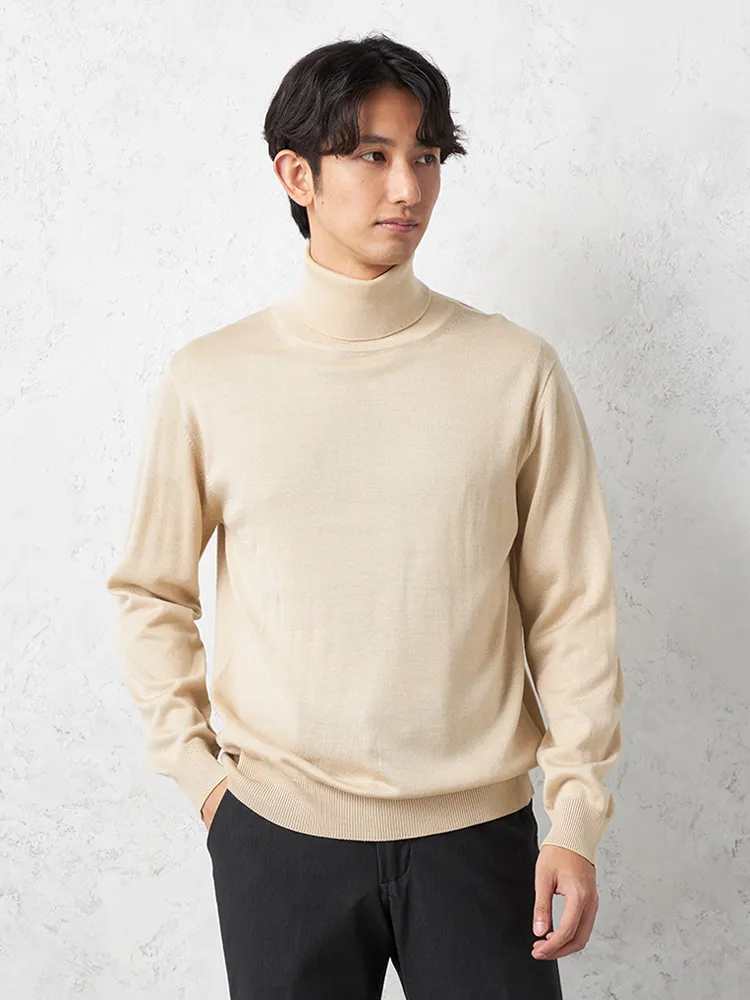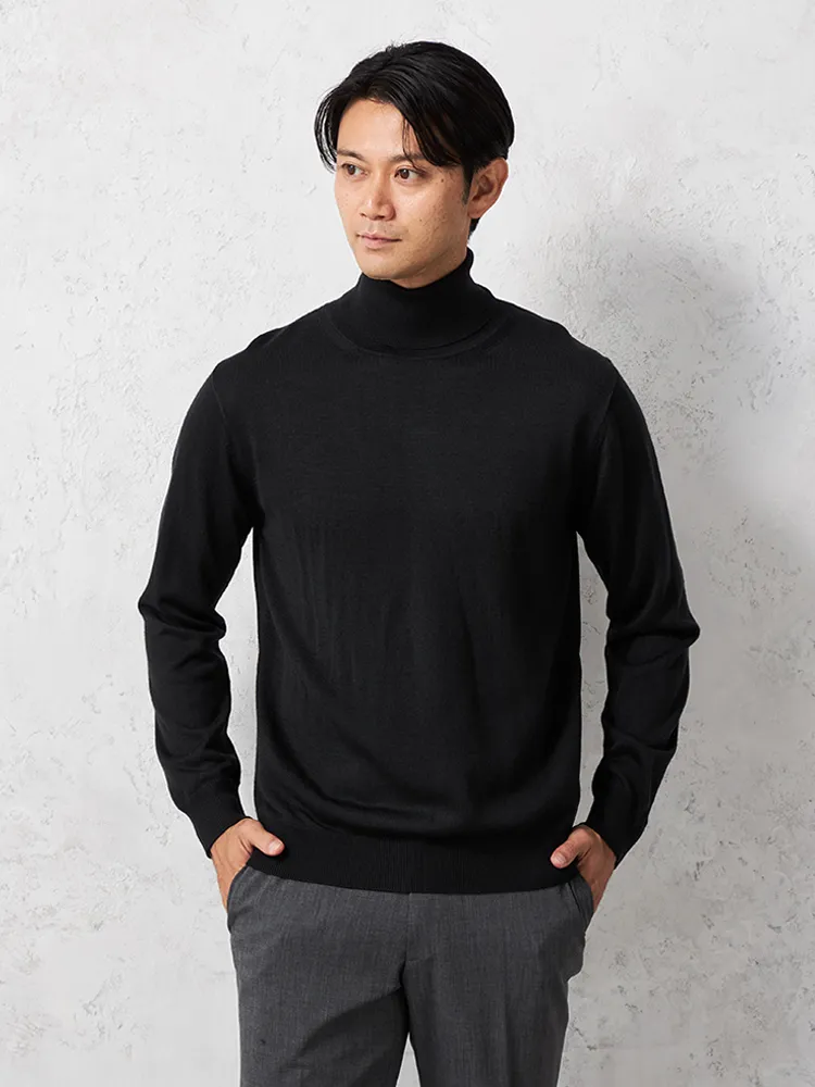 【ウール100%】梳毛 タートルネックセーター カジュアルインナー 無地 リッケンバッカーブラック 秋冬