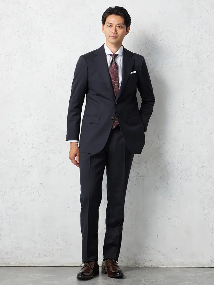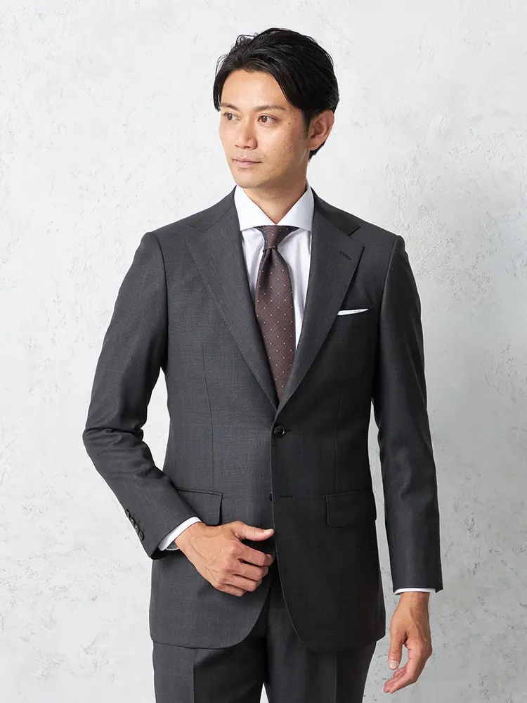 雰囲気のある上品な無地のベーシックな2つボタンスーツ。
