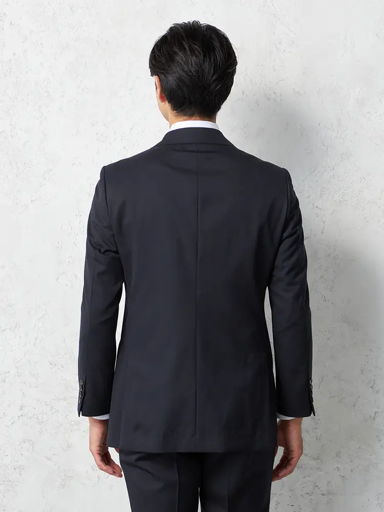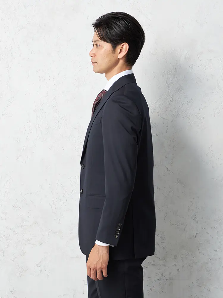 裏地は背抜き仕立て、サイドベンツで動きやすさを付与しました。