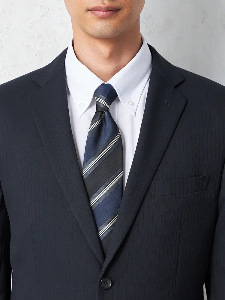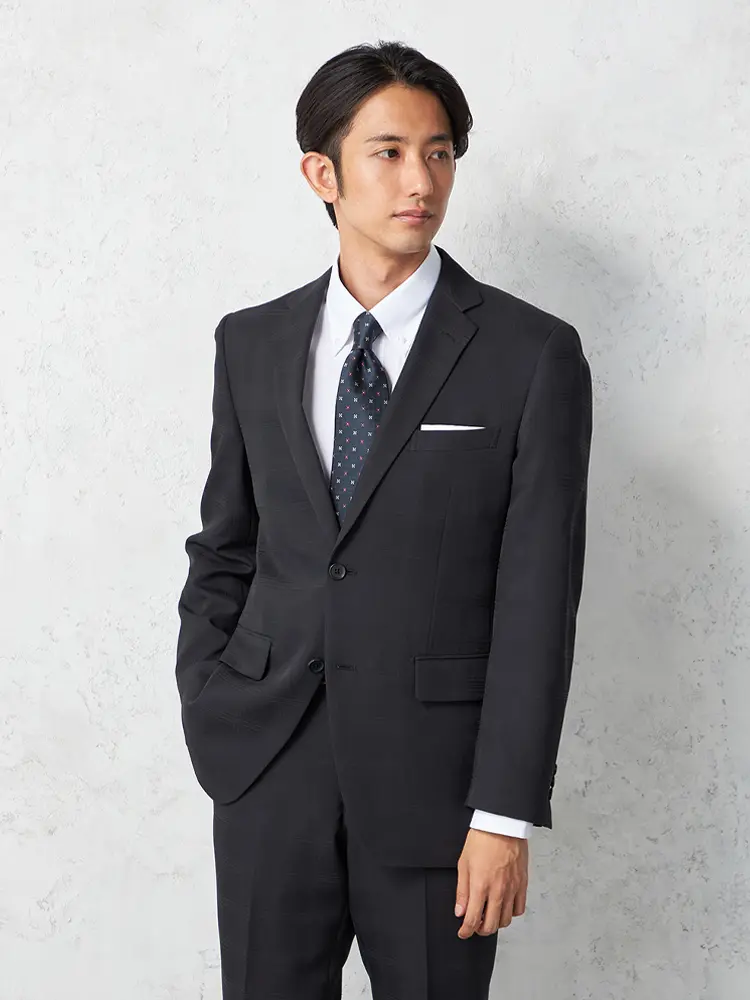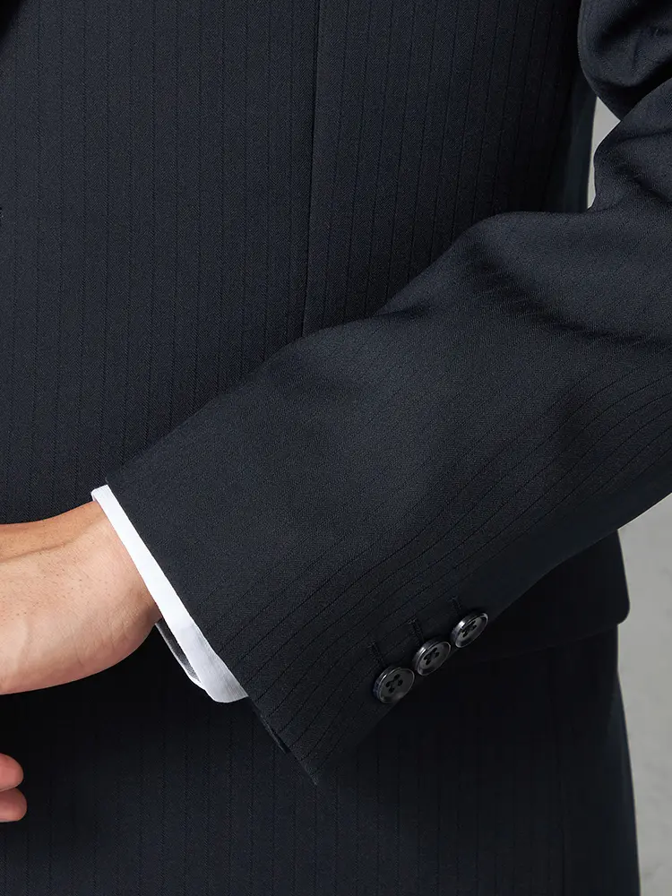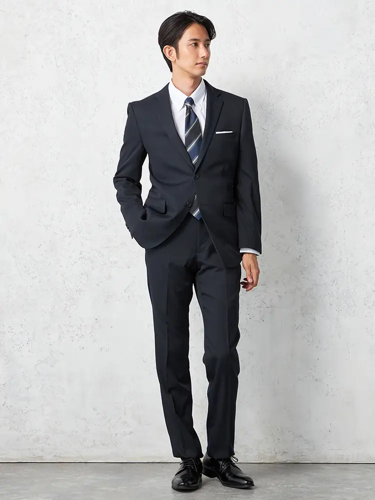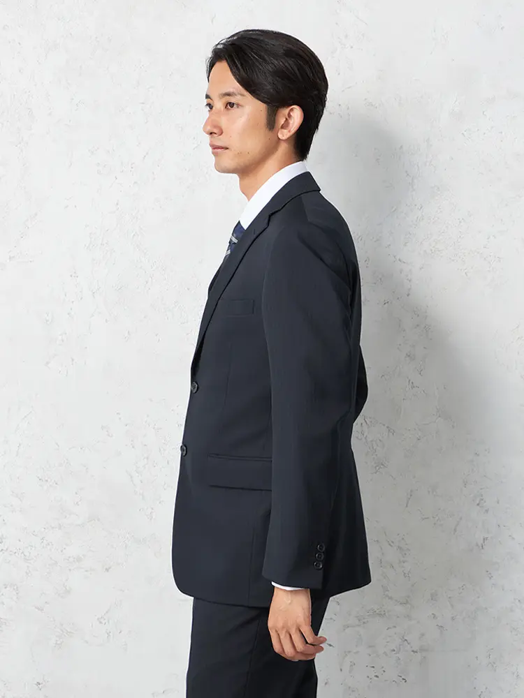 上品さやシャープな印象があり、ビジネスシーンでも好まれる上下ウォッシャブルのスーツ。