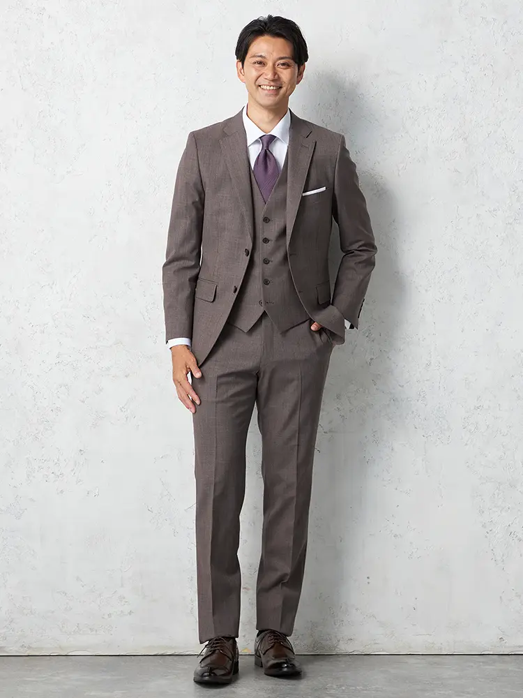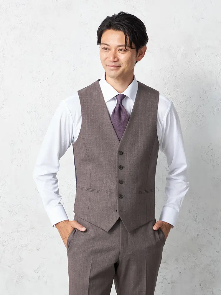 2WAYストレッチ生地に、ジャケットとベストのキュプラの裏地など着心地も快適です。