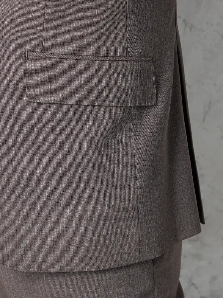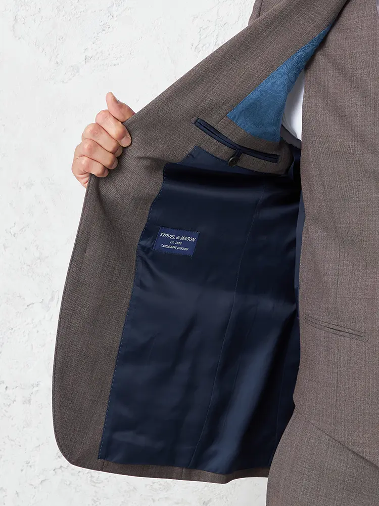 毛芯仕上げのラペルやAMFステッチなど、細部までこだわった作り。
