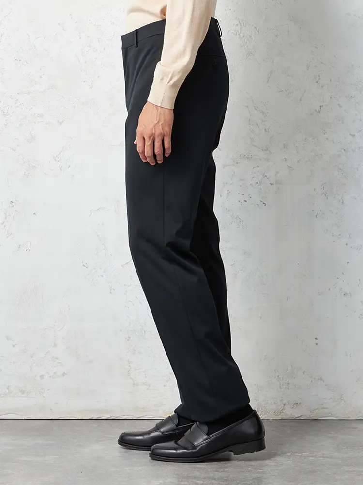 腰回りはノータックで仕上げており、スマートに穿きこなせます。
