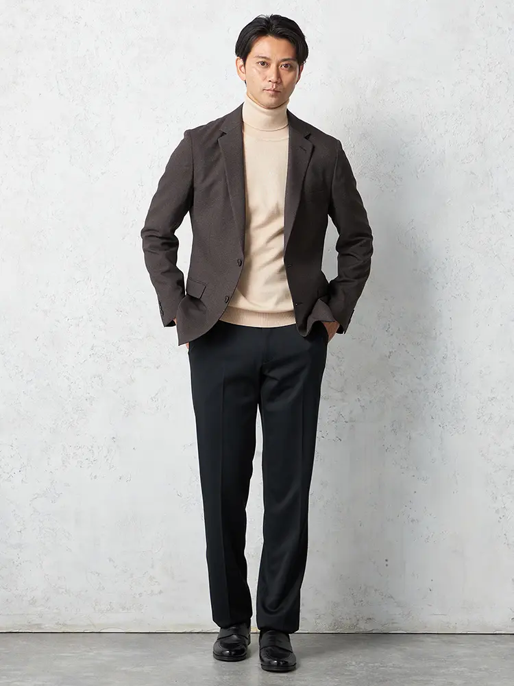 お手持ちのテーラードジャケットを合わせるのもおすすめです。