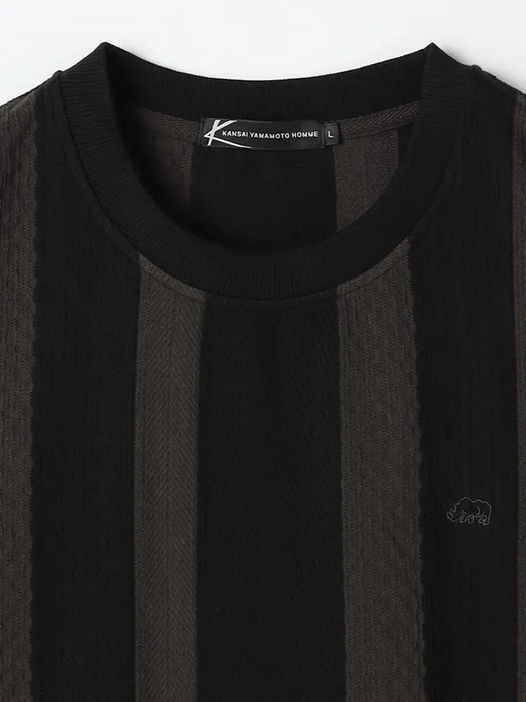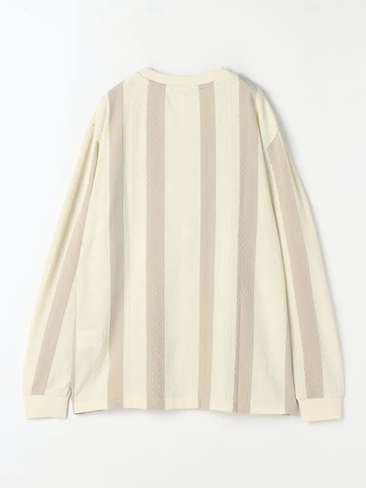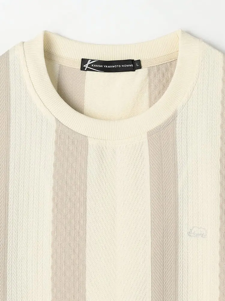 【カンサイ・ヤマモト】ストライプトレーナー カジュアルインナー 秋冬(ホワイト)