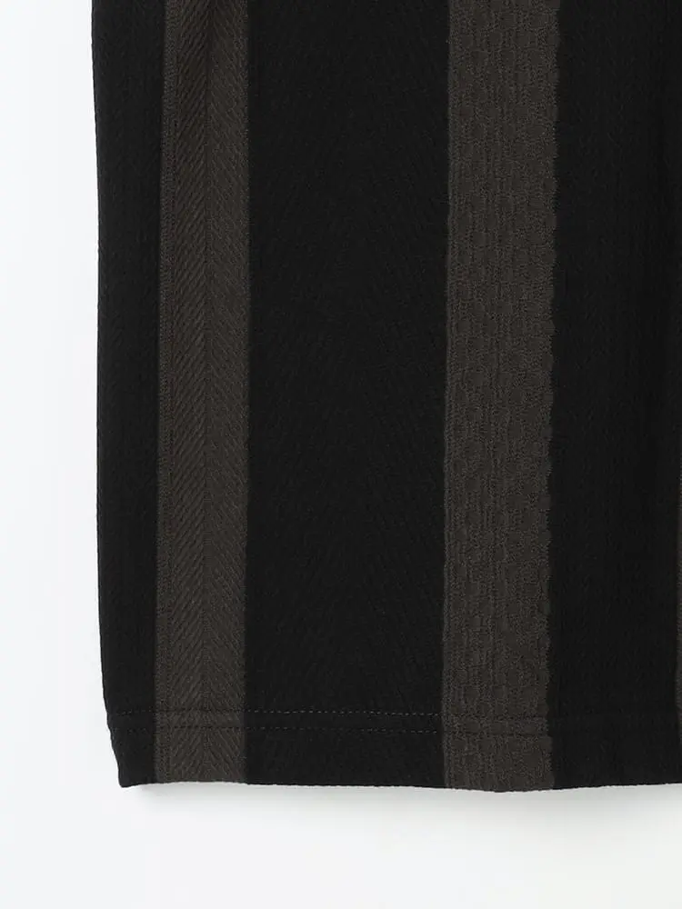 リズミカルな印象のピッチでストライプ柄をデザインしたトレーナー。