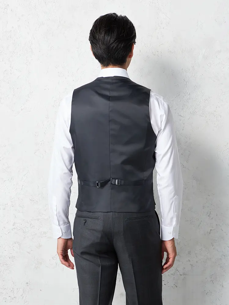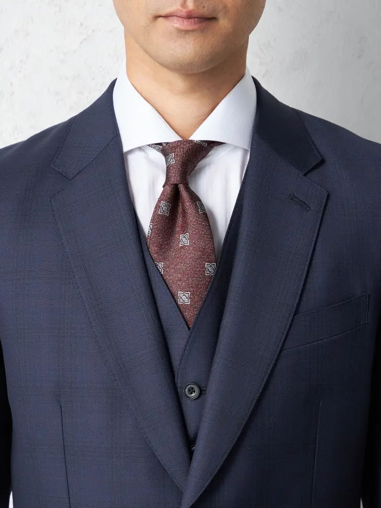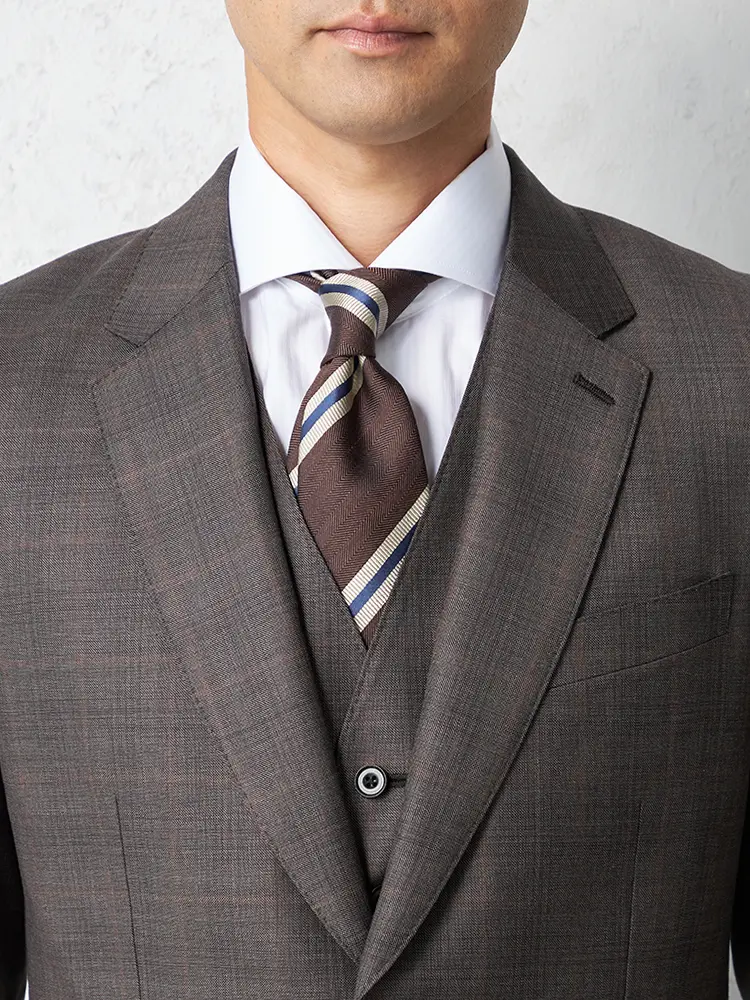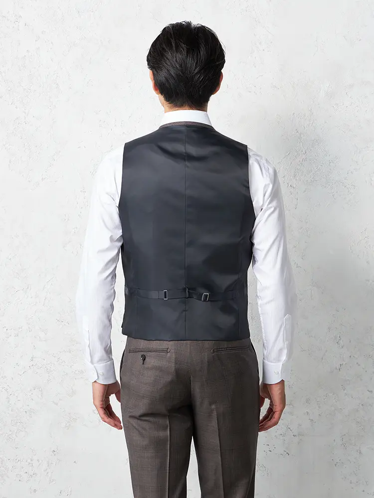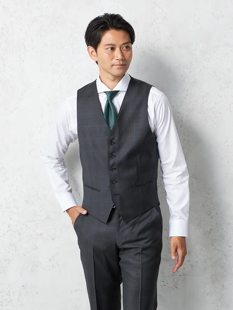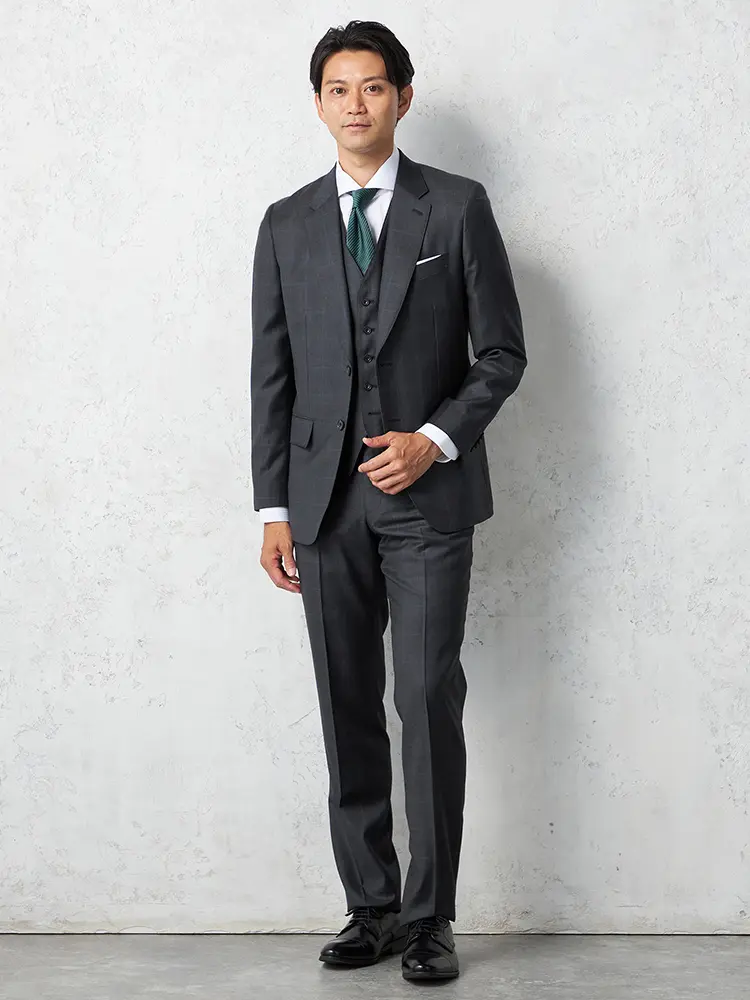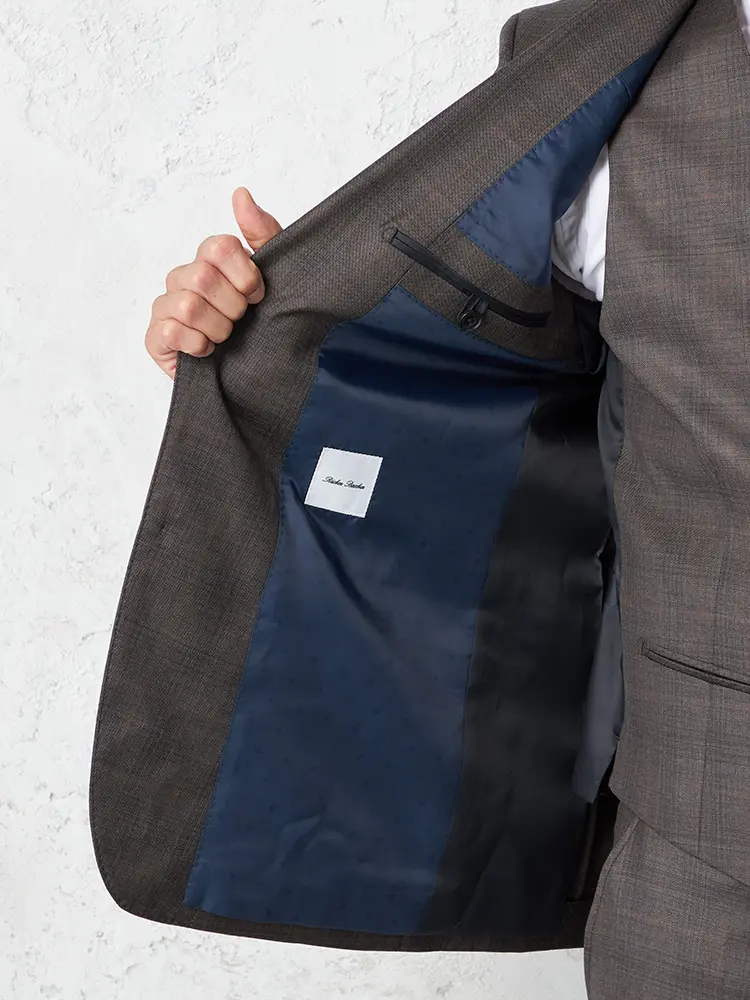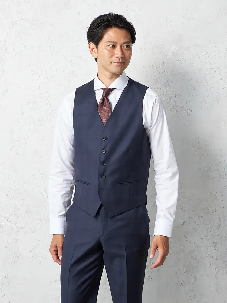 背抜き仕様のスリーピーススーツには、イタリアの老舗生地メーカーREDAの生地を使用しています。