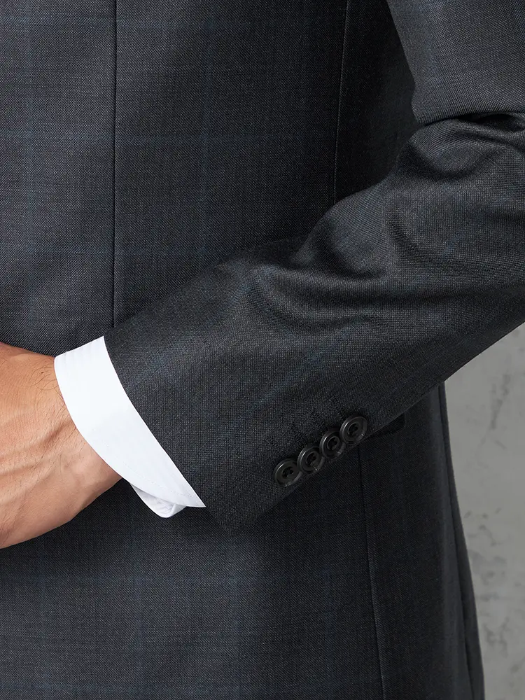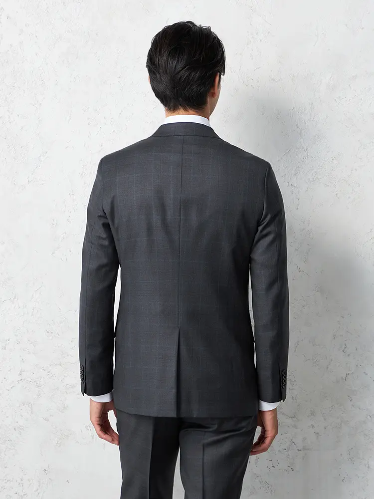 【即納】【WEB限定】スーツ2つボタン4WAYストレッチ上下ウォッシャブルミニチェックグレー