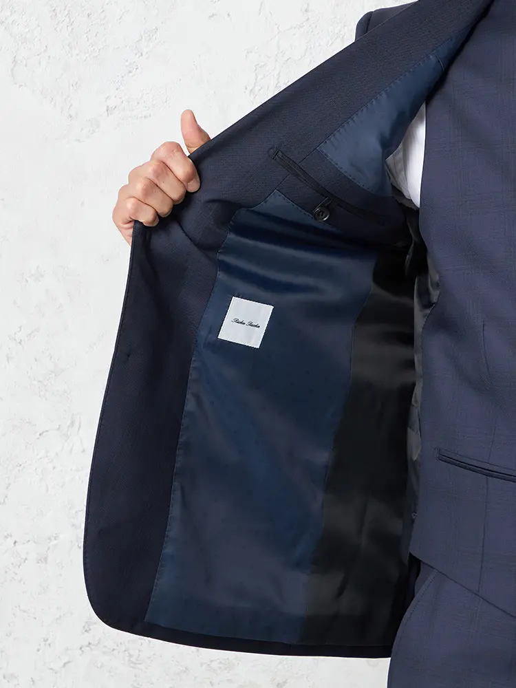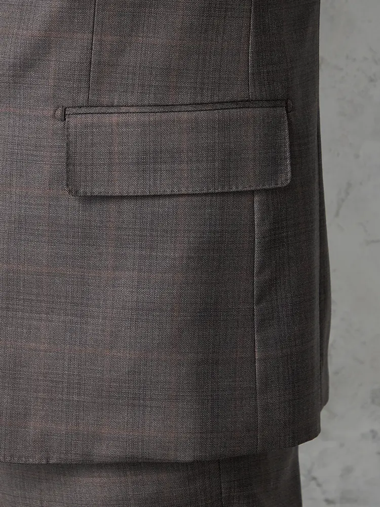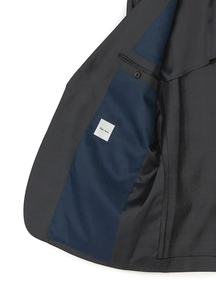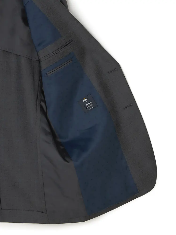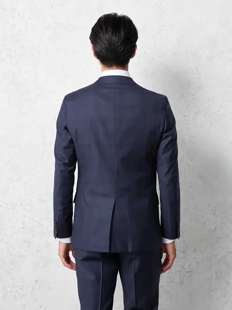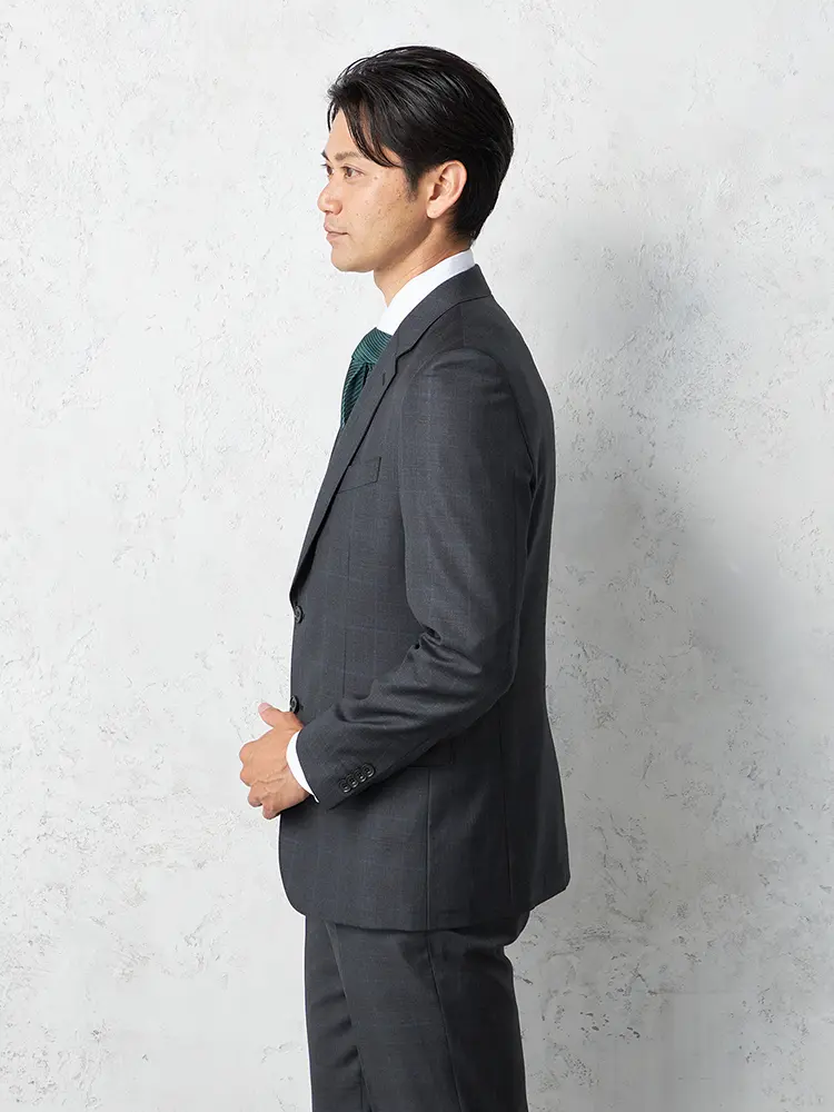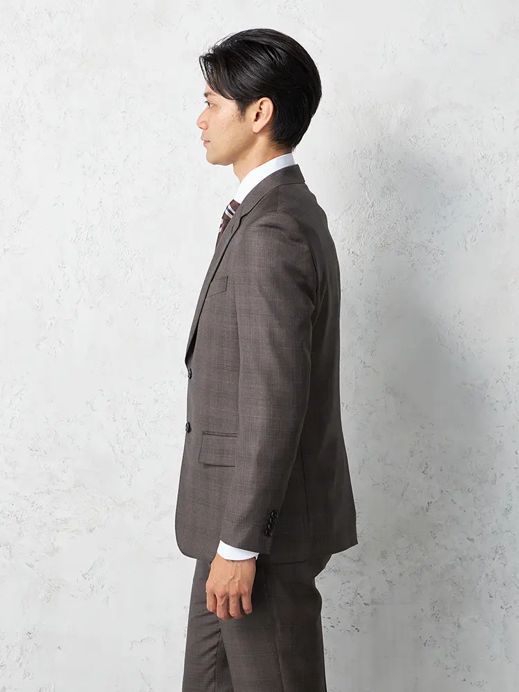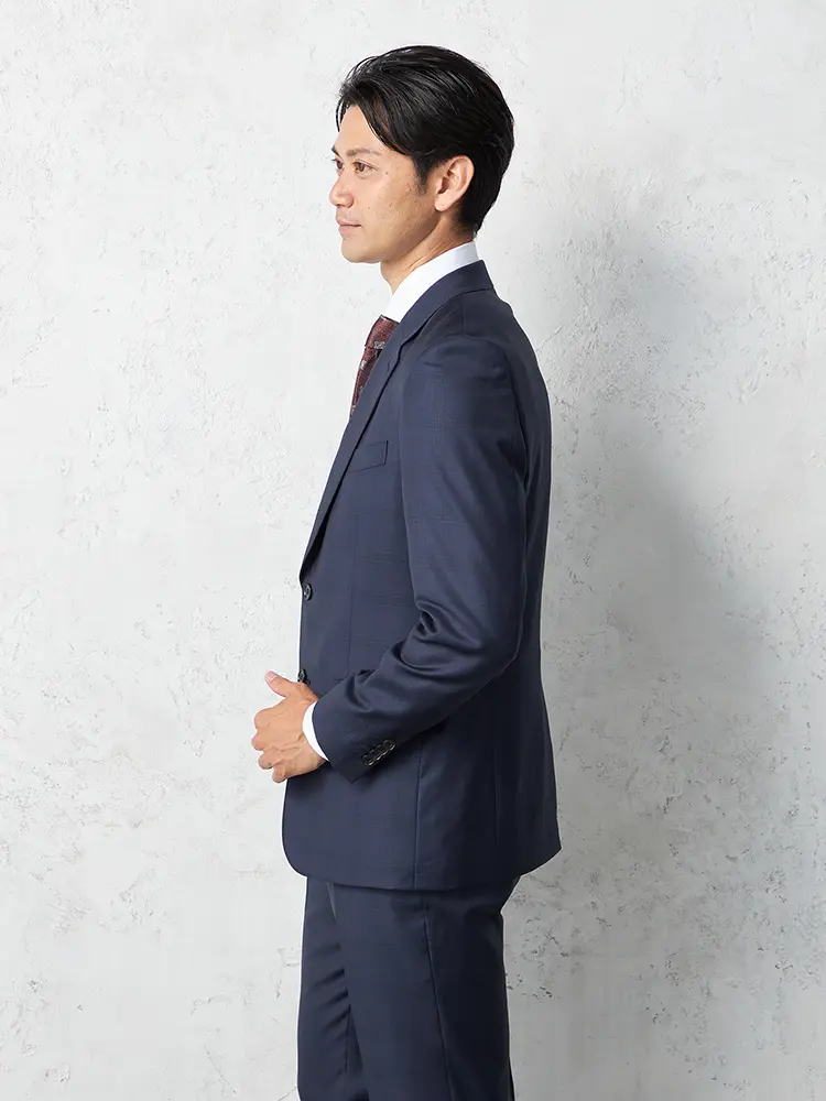 また、胸元に立体感を生む、ラペル毛芯縫製によって品格あるクラッシックスーツに仕上げております。