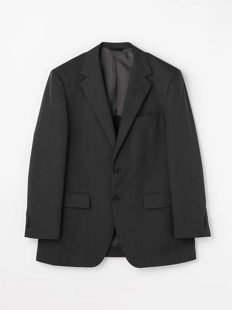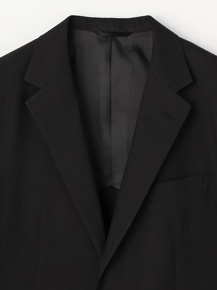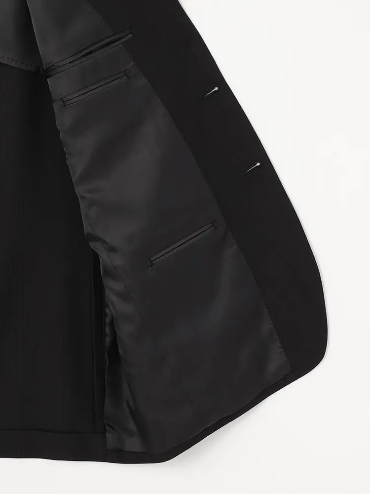 【即納】スーツ2つボタン【WEB限定】上下ウォッシャブルブラックストライプ