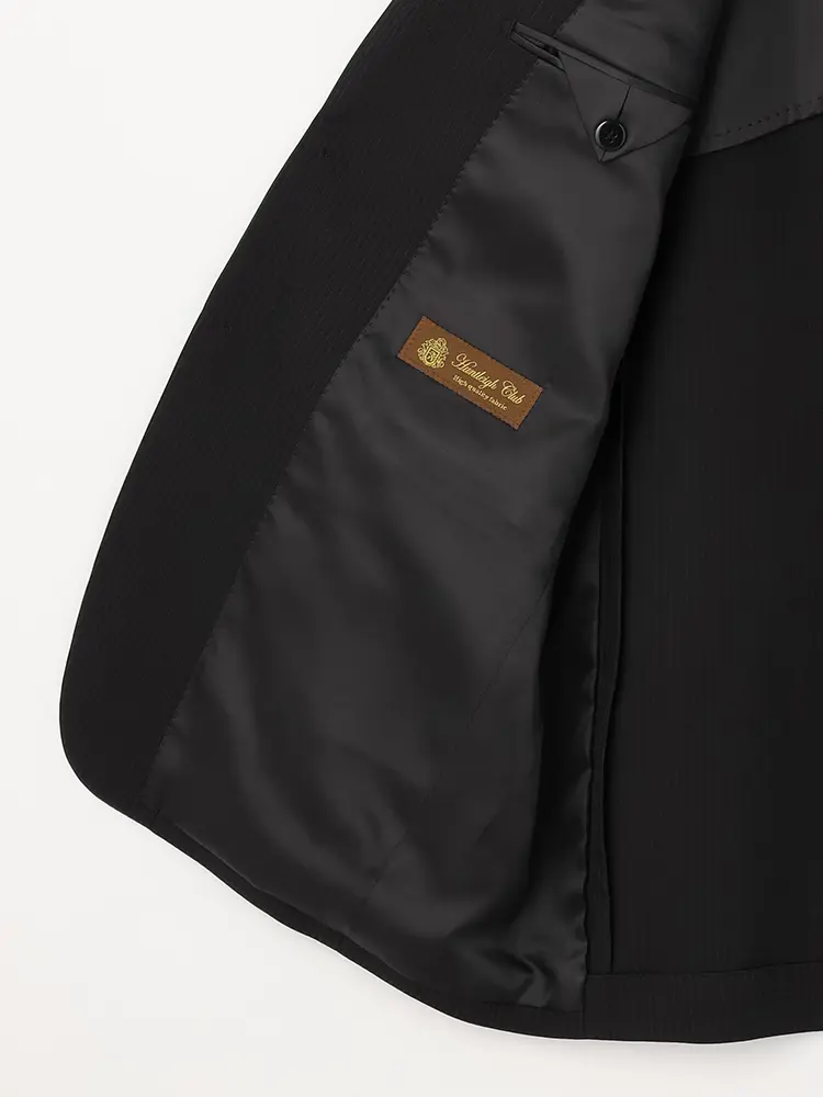 ジャケットは背抜き仕立てで、センターベントを入れた動きやすいデザイン。