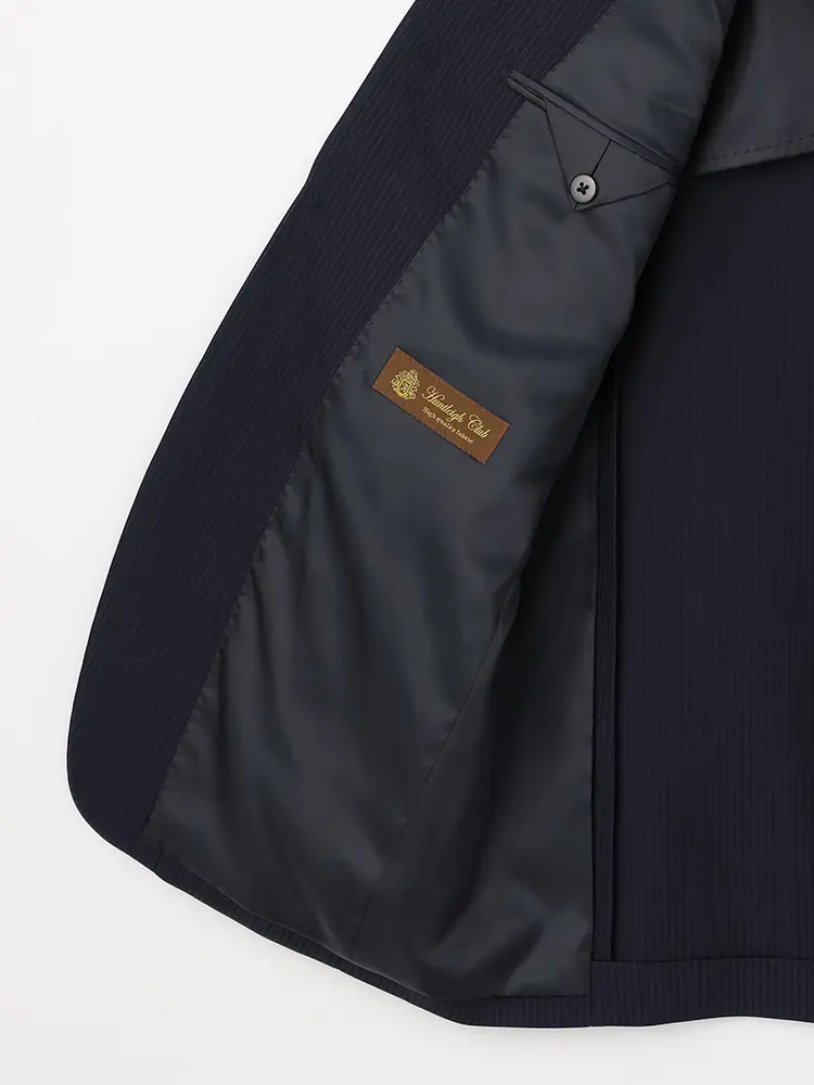 【ハントレークラブ】 上下ウォッシャブル スーツ 2つボタン ストライプ ワンタック ハントレークラブ 通年(ネイビー)