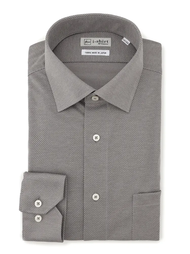 【アイシャツ】 長袖Yシャツ ワイド 吸汗速乾 ストレッチ 形態安定 通年(M.グレー)