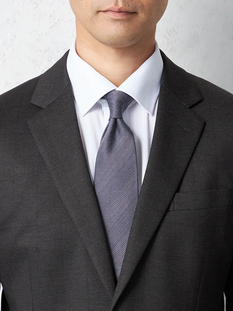 ウインドペン柄をさりげなくのせたセンターベント、半裏仕立てのスーツ。