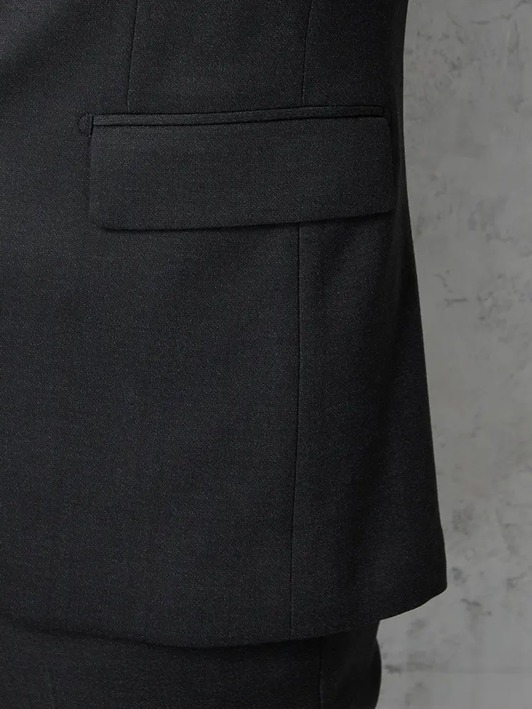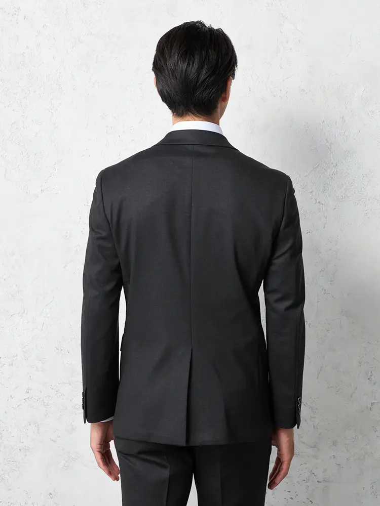 シックに着こなせる、落ち着いた色味のセンターベント、半裏仕立てのスーツ。