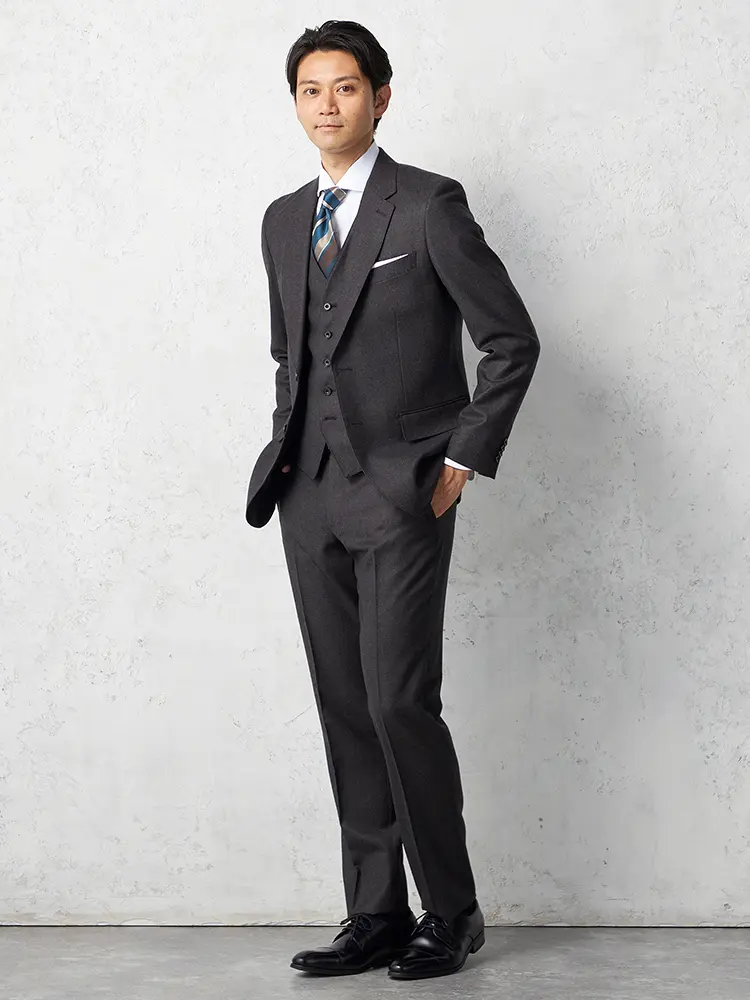 英国名門ジョンフォスターの生地を使用した、はるやま創業70周年記念特別モデル。