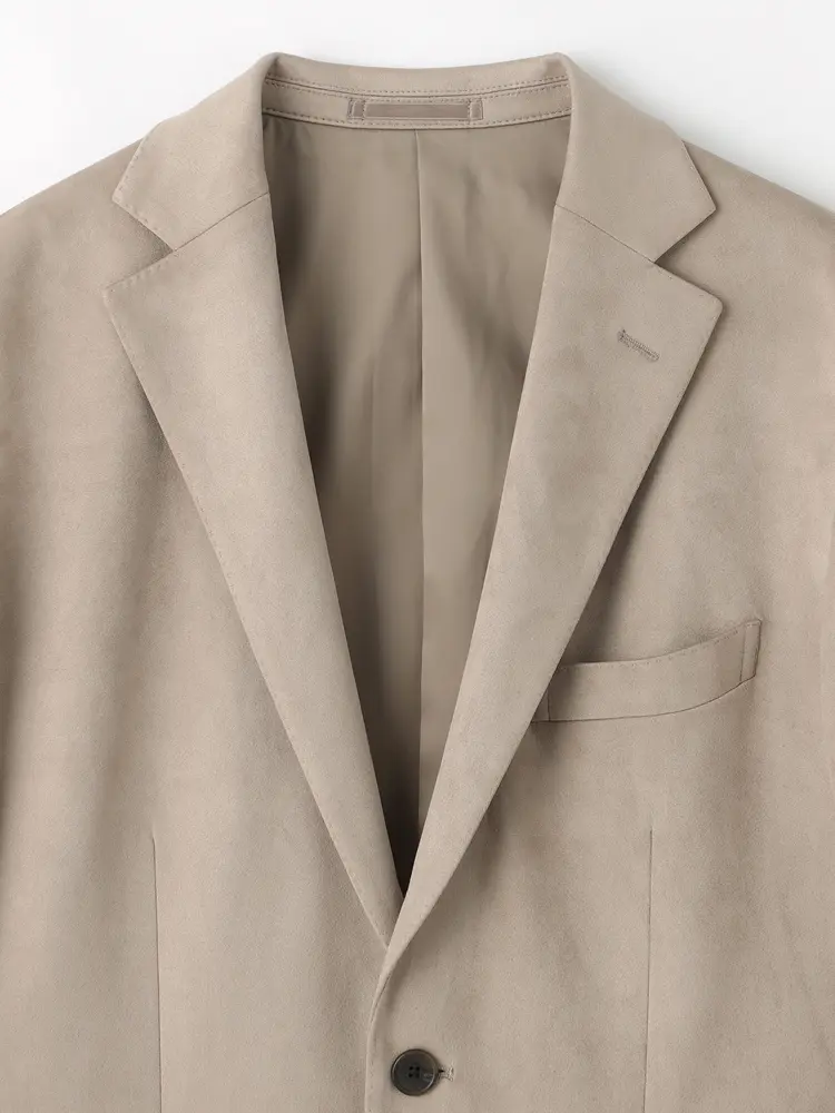 ストレッチ性のあるスウェードニット素材を使用した、2つボタンのテーラードジャケットです。
