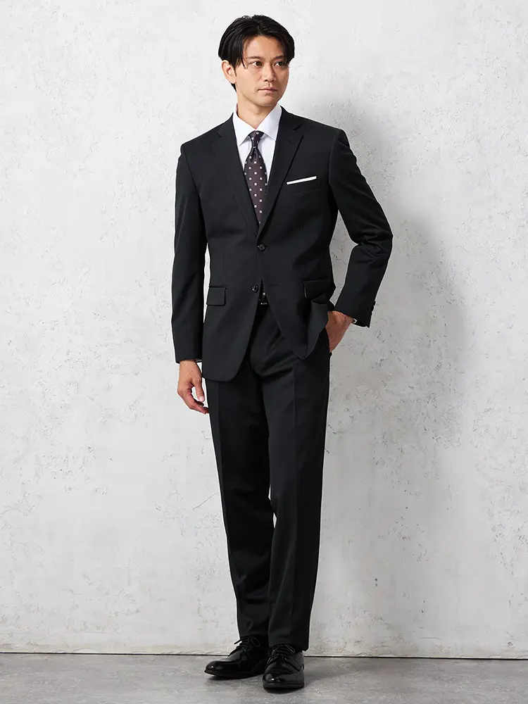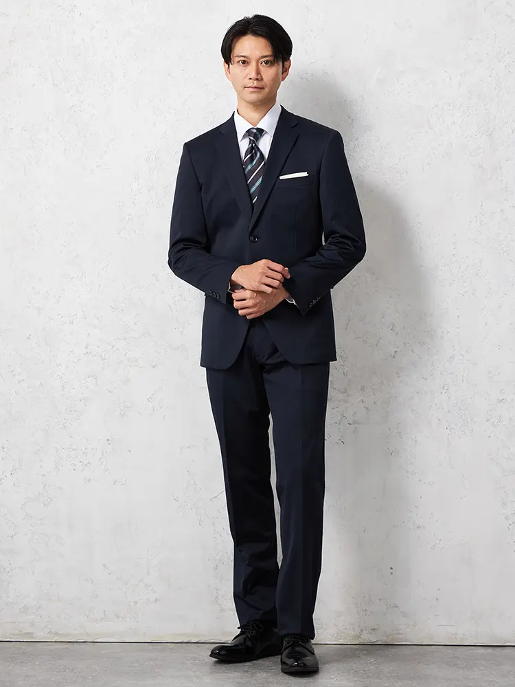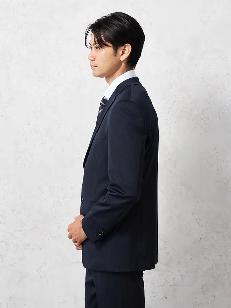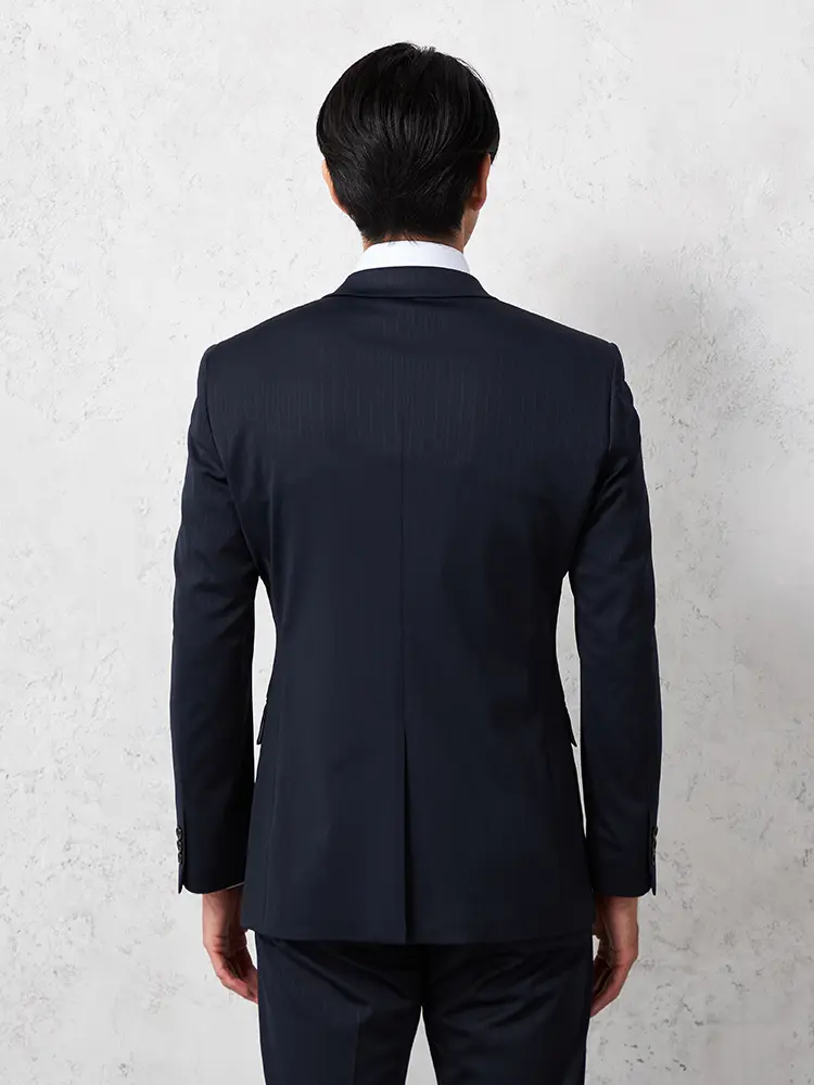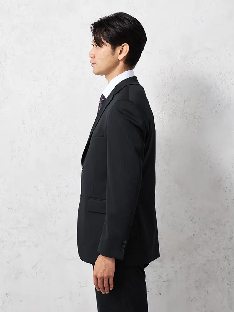 背抜き・センターベント・ノータックの採用で、軽やかさと動きやすさを徹底追求したスタイリッシュな一着。