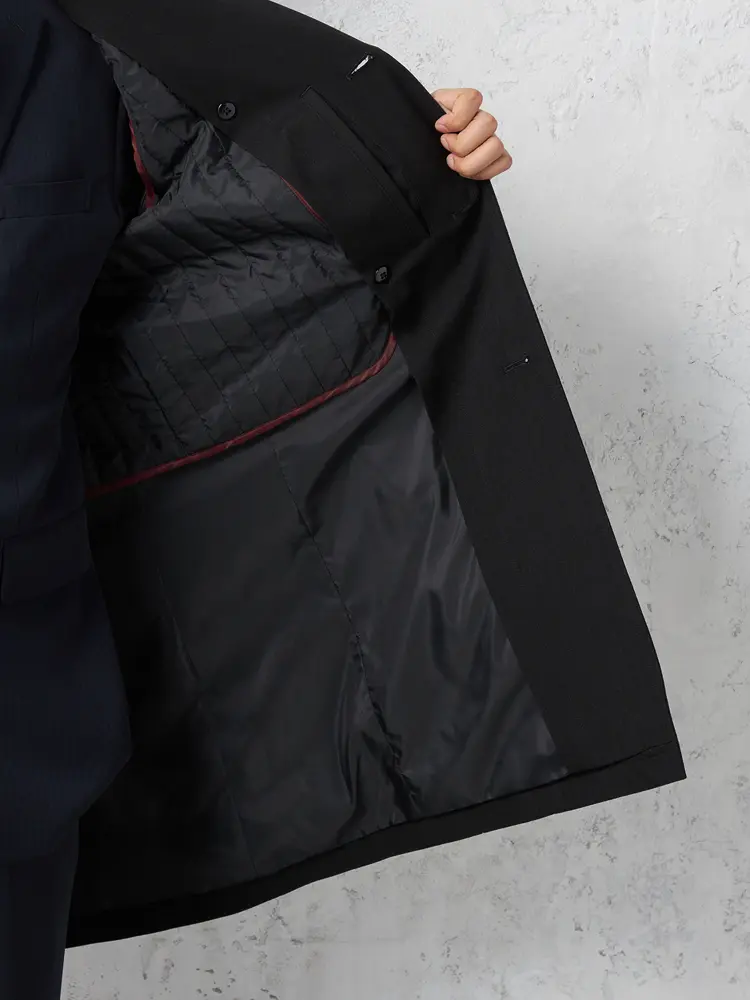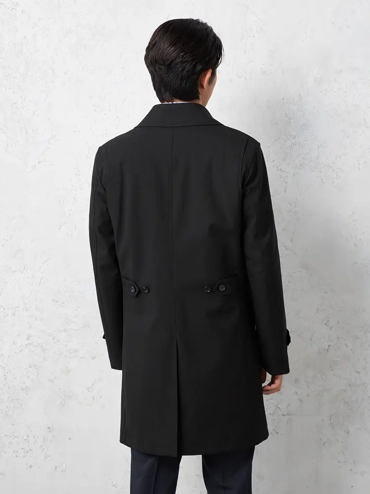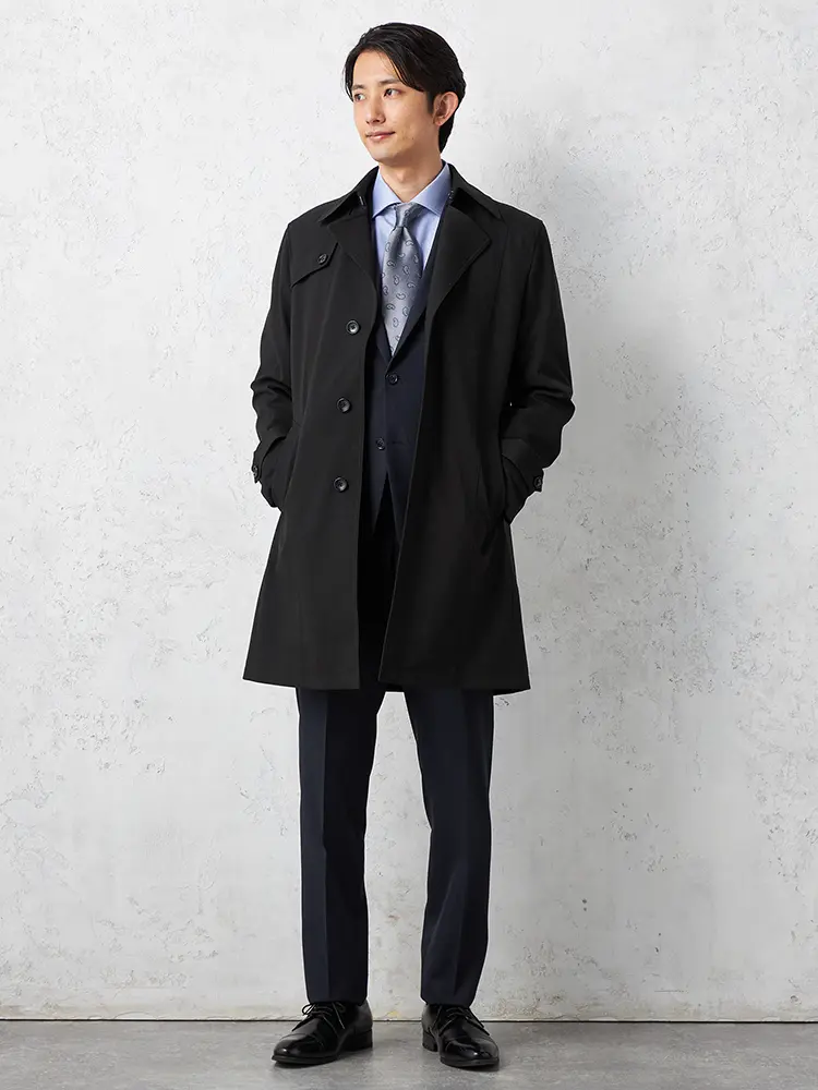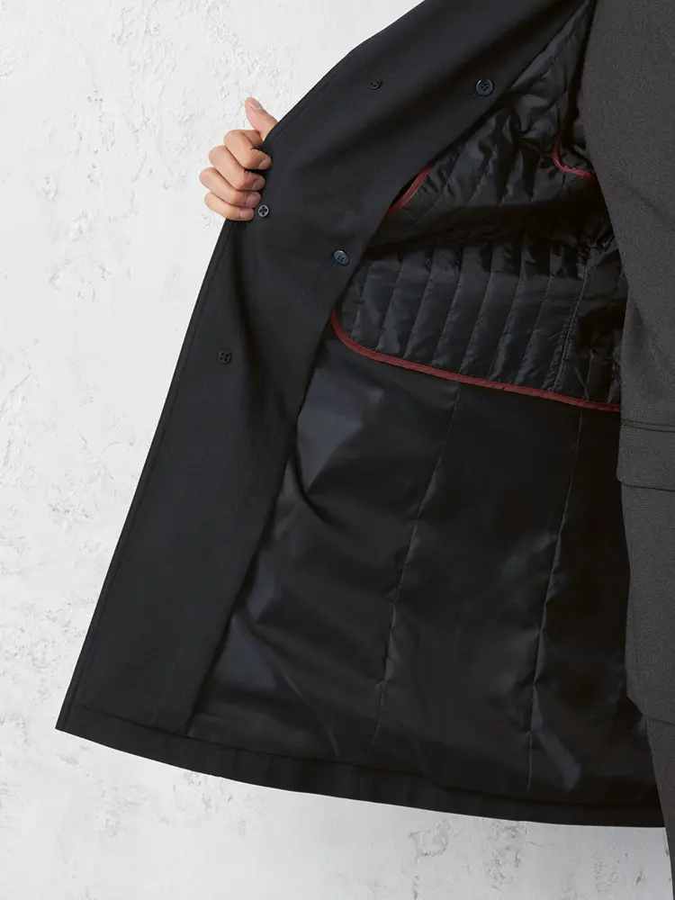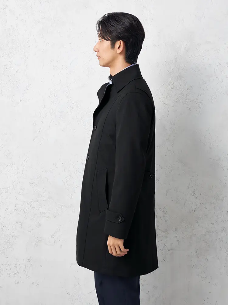 【軽量】ステンカラーコートダウンライナー付き撥水ストレッチ無地nero秋冬