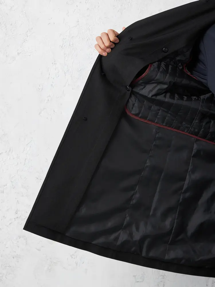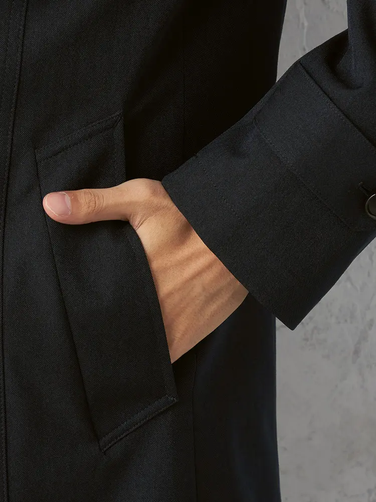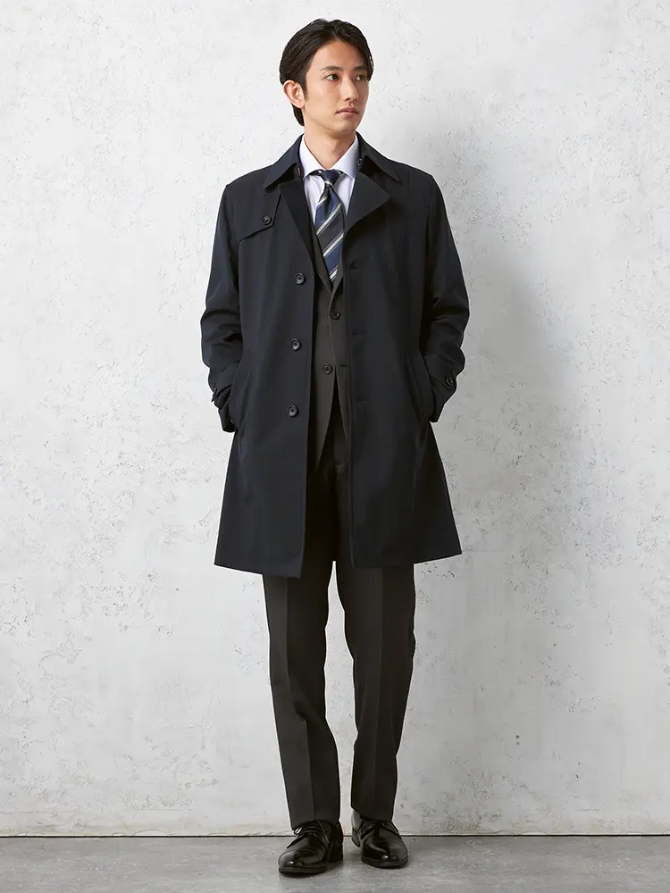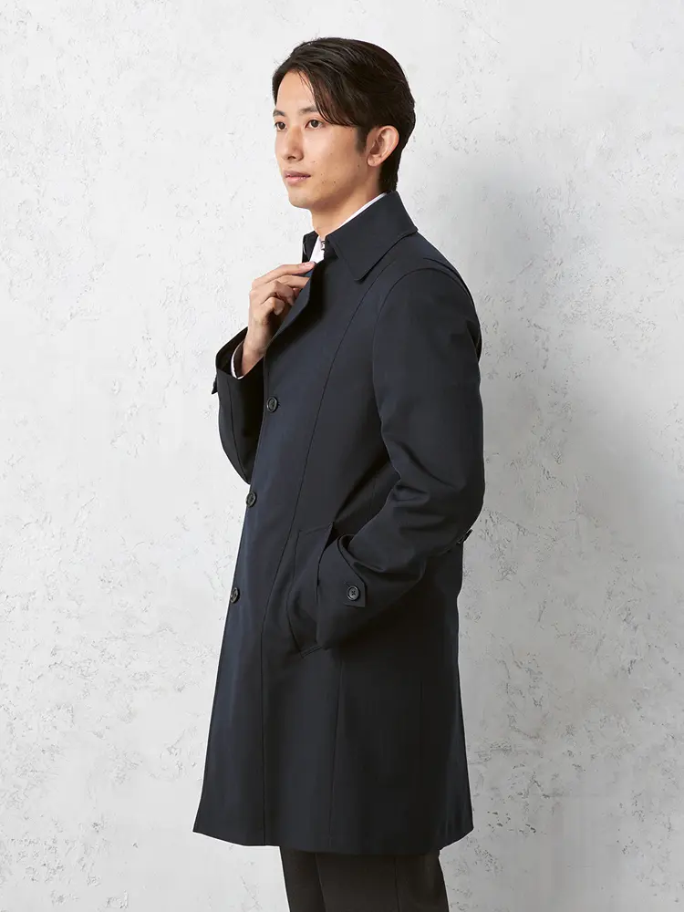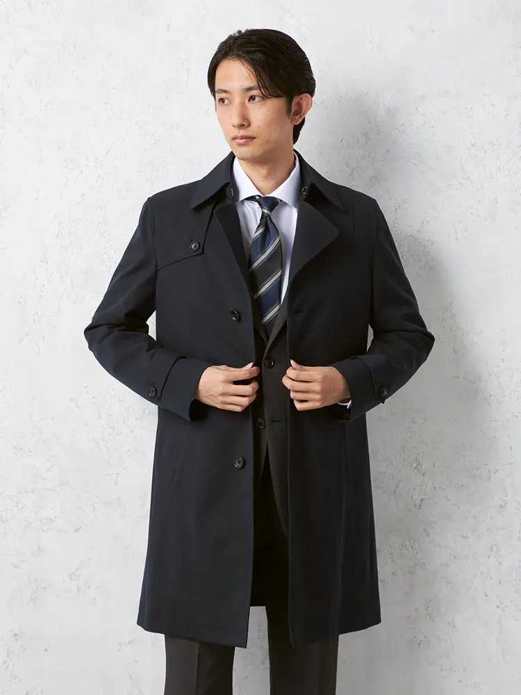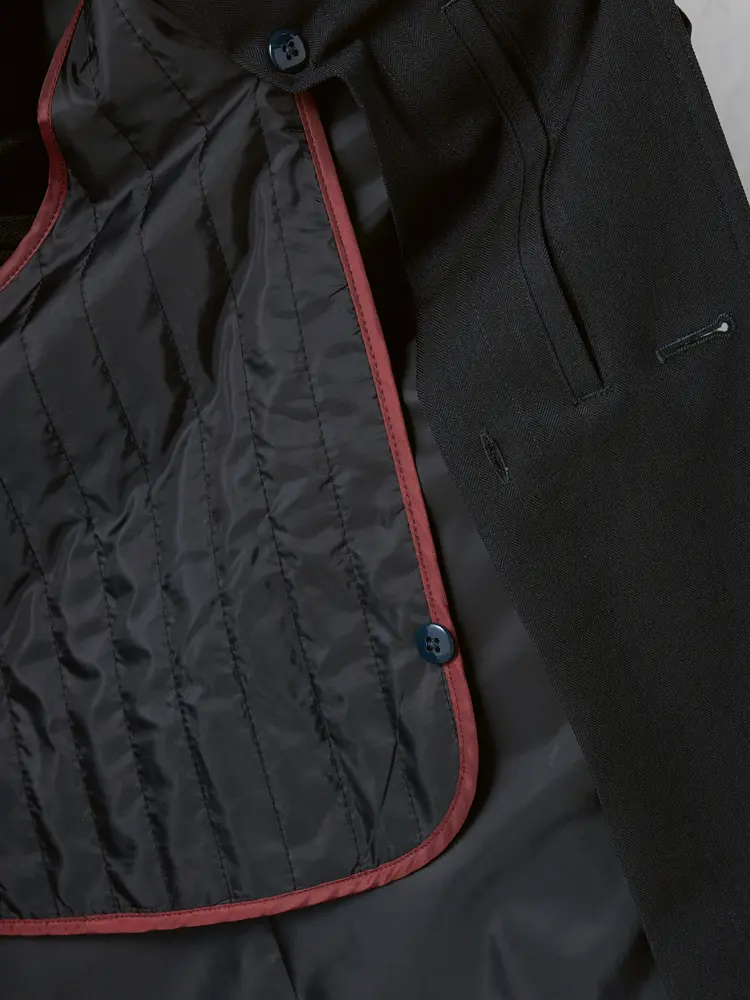 ベストのライナーが付属した防風仕様のステンカラーコートです。