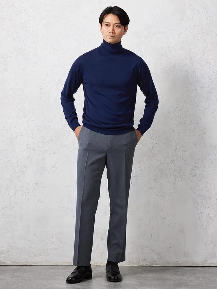 ご自宅ではもちろん、オフィスで着られるきちんとさを兼ね備えたベーシックなアイテム。