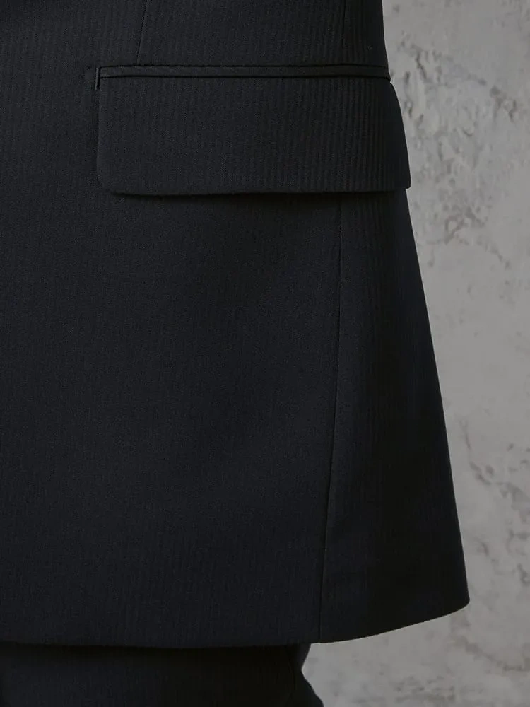 切り込みが1本のセンターベントデザインです。細身でスッキリとしたシルエットが特徴で、快適な着心地を提供します