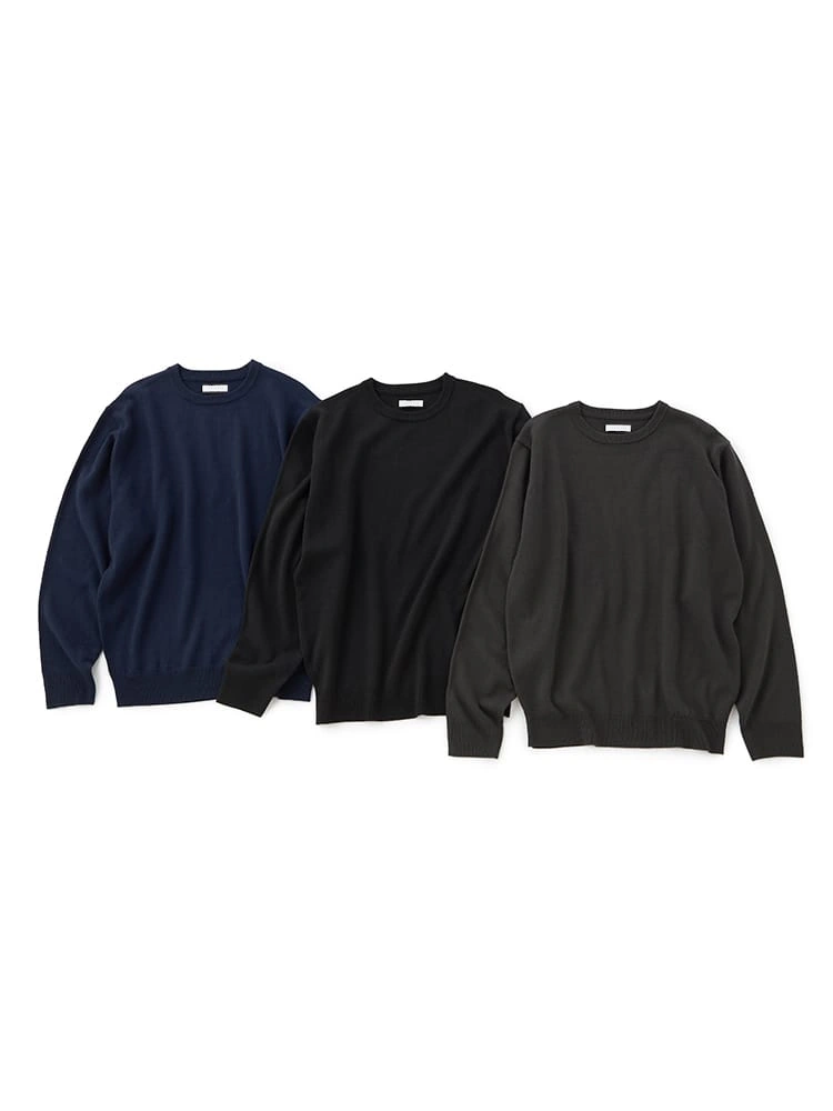 【3点パック/おまとめセット】クルーネック ベーシックニット Aセット(ブラック&グレー&ネイビー)