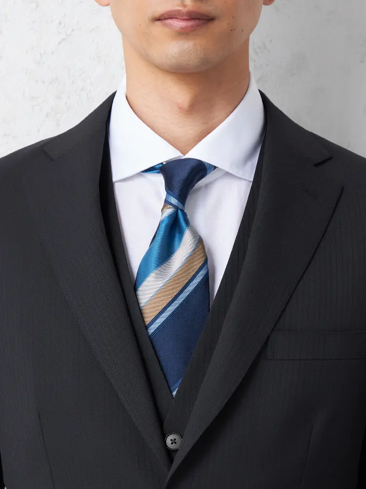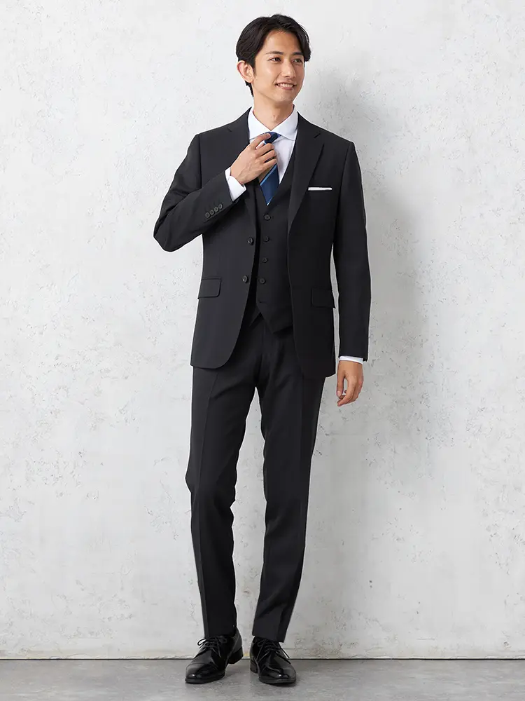 フレッシャーズ向け特別企画、高品質ウールを使用したスリーピーススーツです。
