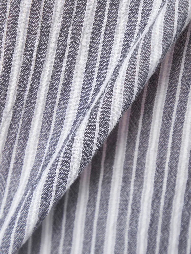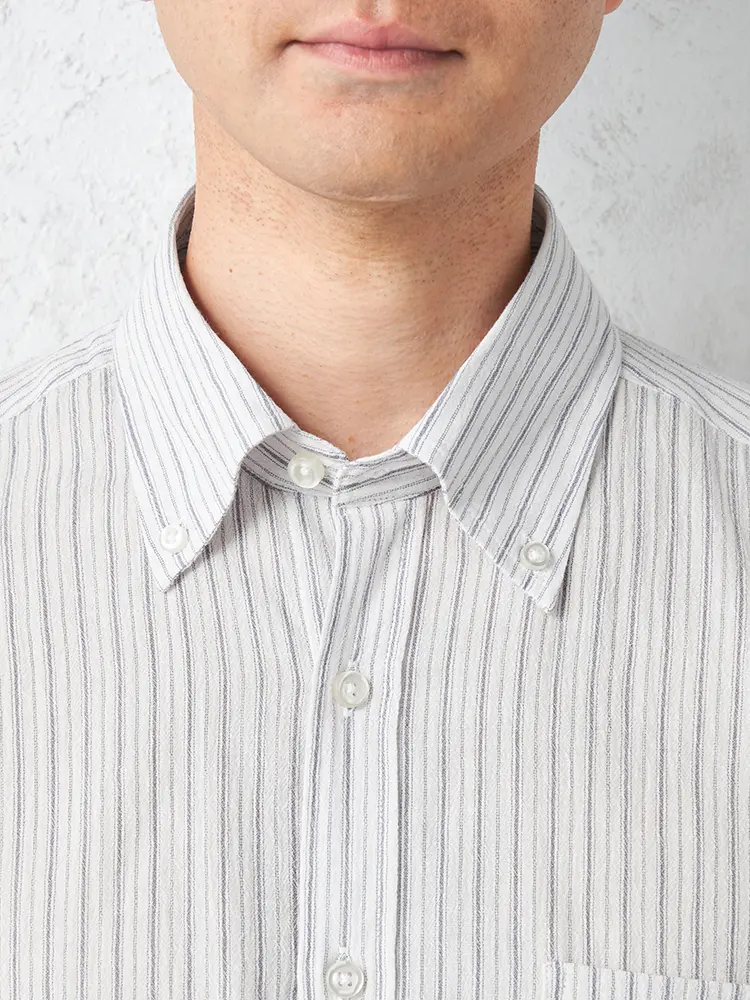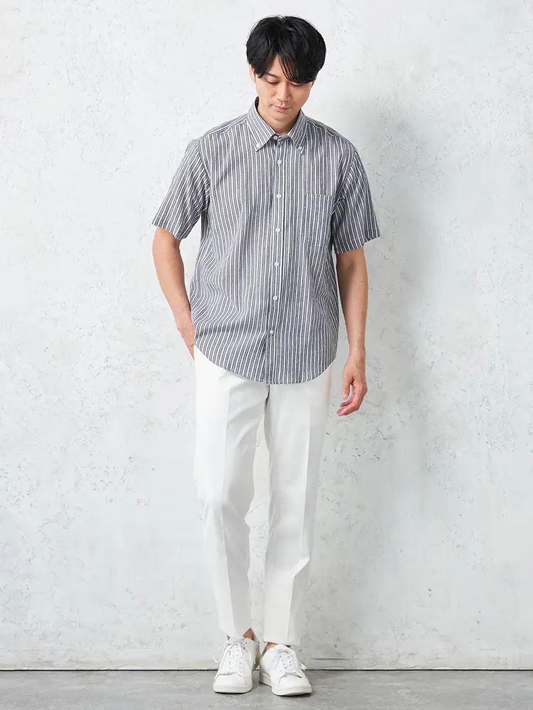 清潔感のある配色が涼やかなストライプ柄半袖シャツ。