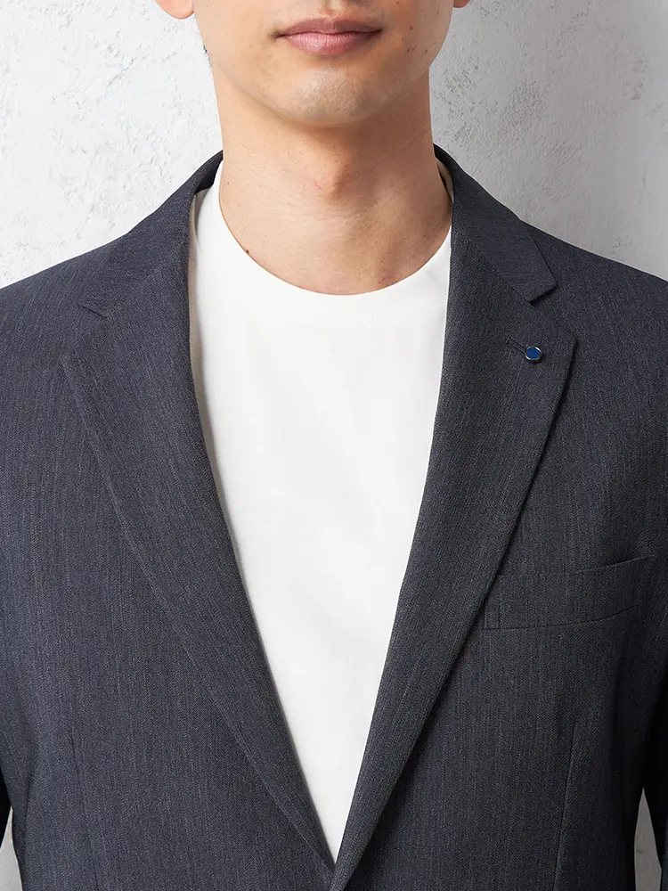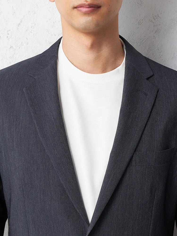 独特なムラ感と味わい深い表情が魅力の、デニム調ストレッチ素材を使用したテーラードジャケットです。