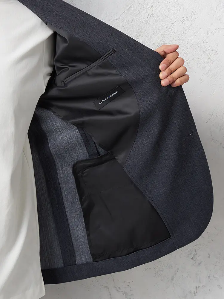 【KATHARINEEHAMNETT-キャサリン・イー・ハムネット-】デニム調ジャケット2つボタン【セットアップ商品有】ウォッシャブルストレッチグレー無地