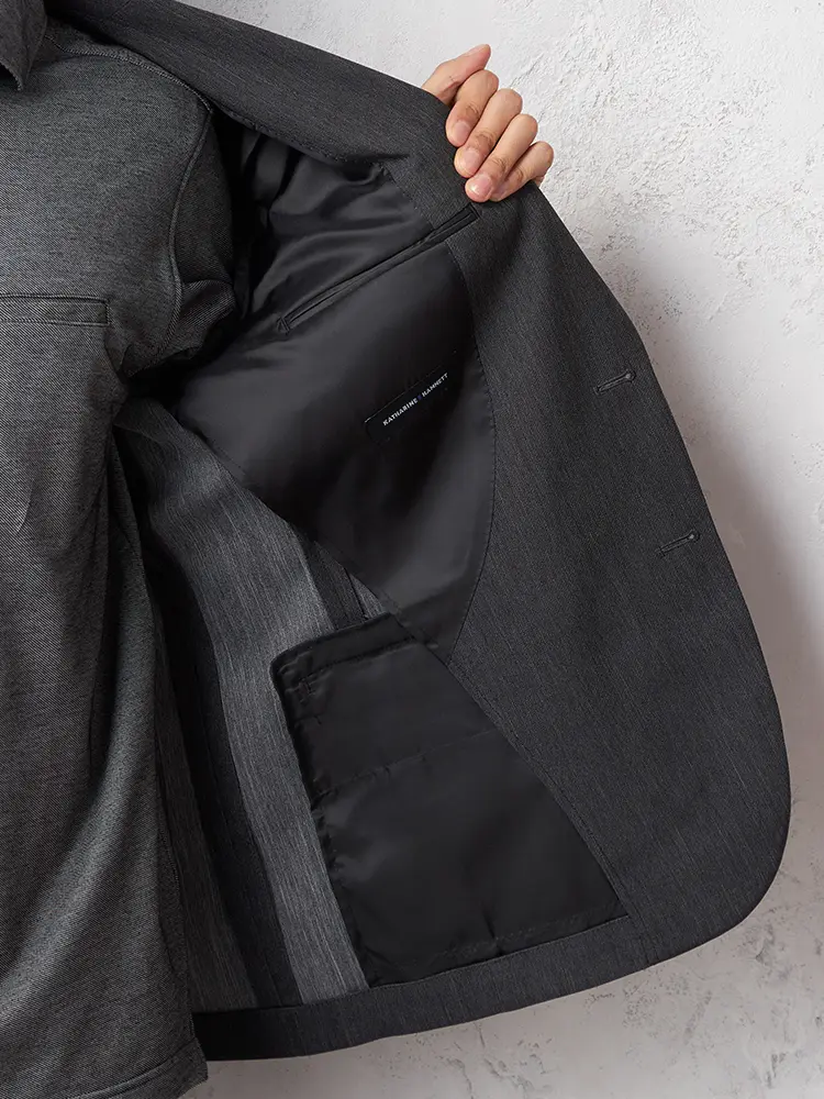 【KATHARINEEHAMNETT-キャサリン・イー・ハムネット-】デニム調ジャケット2つボタン【セットアップ商品有】ウォッシャブルストレッチグレー無地