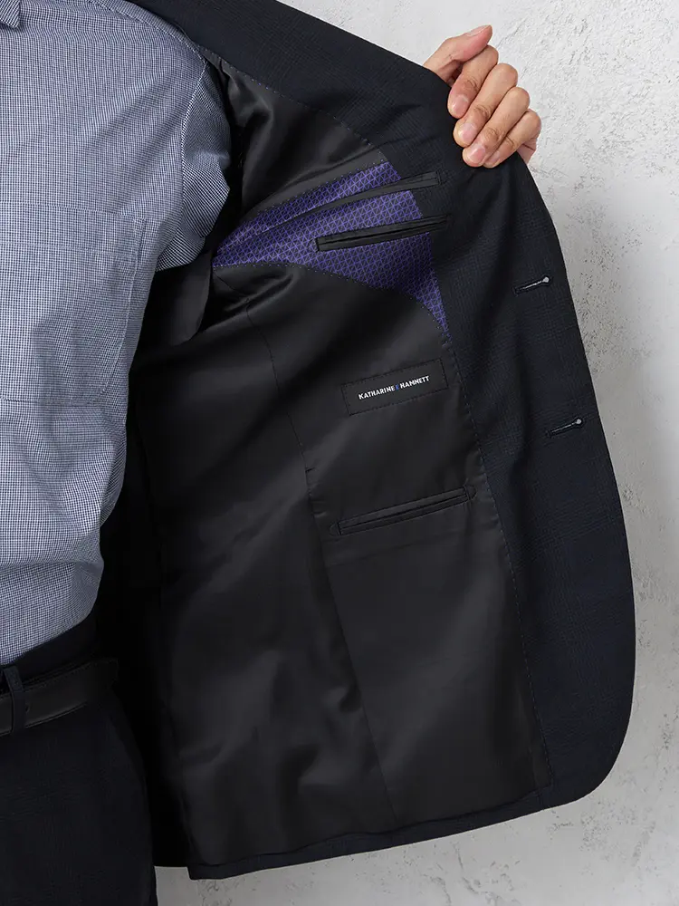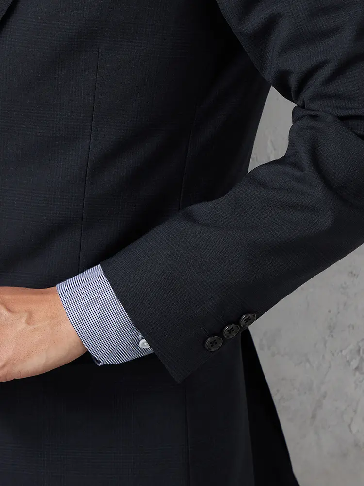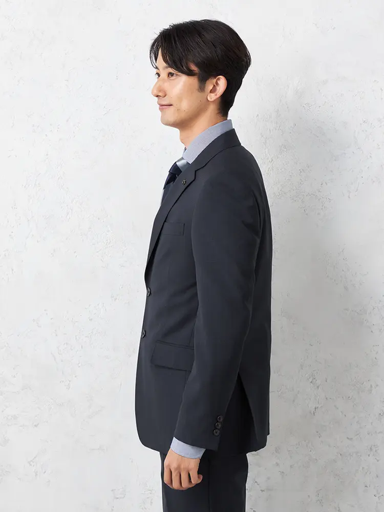 背抜き仕立てとサイドベンツで動きやすく、ノータックのパンツがスマートなシルエットを演出します。