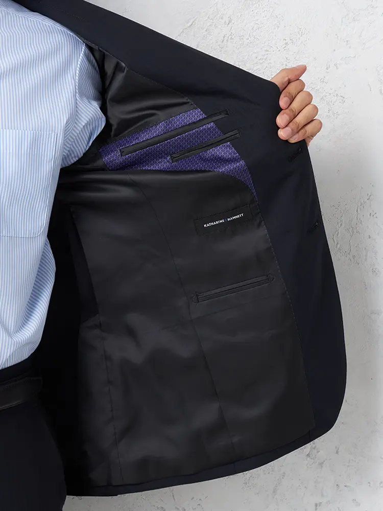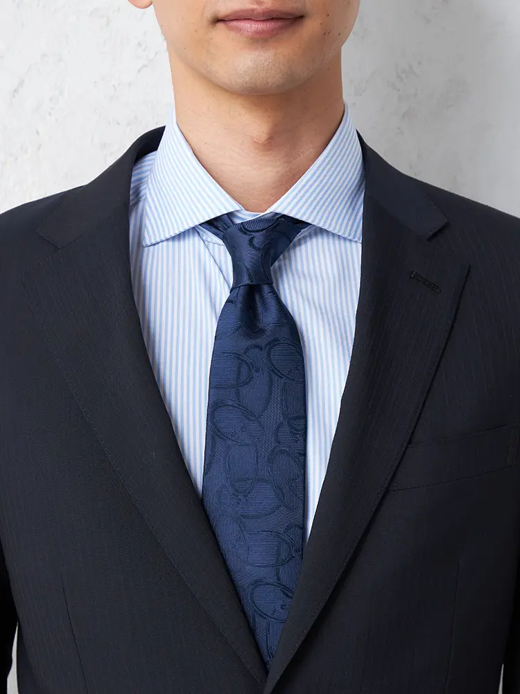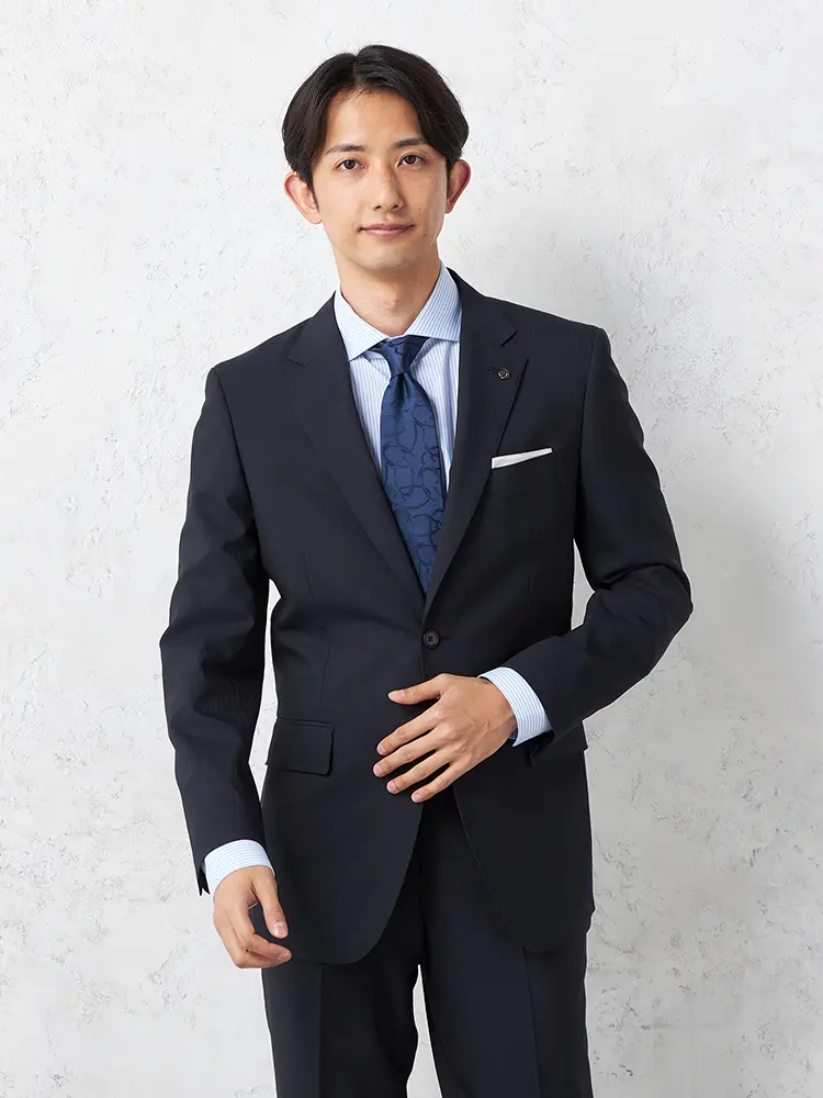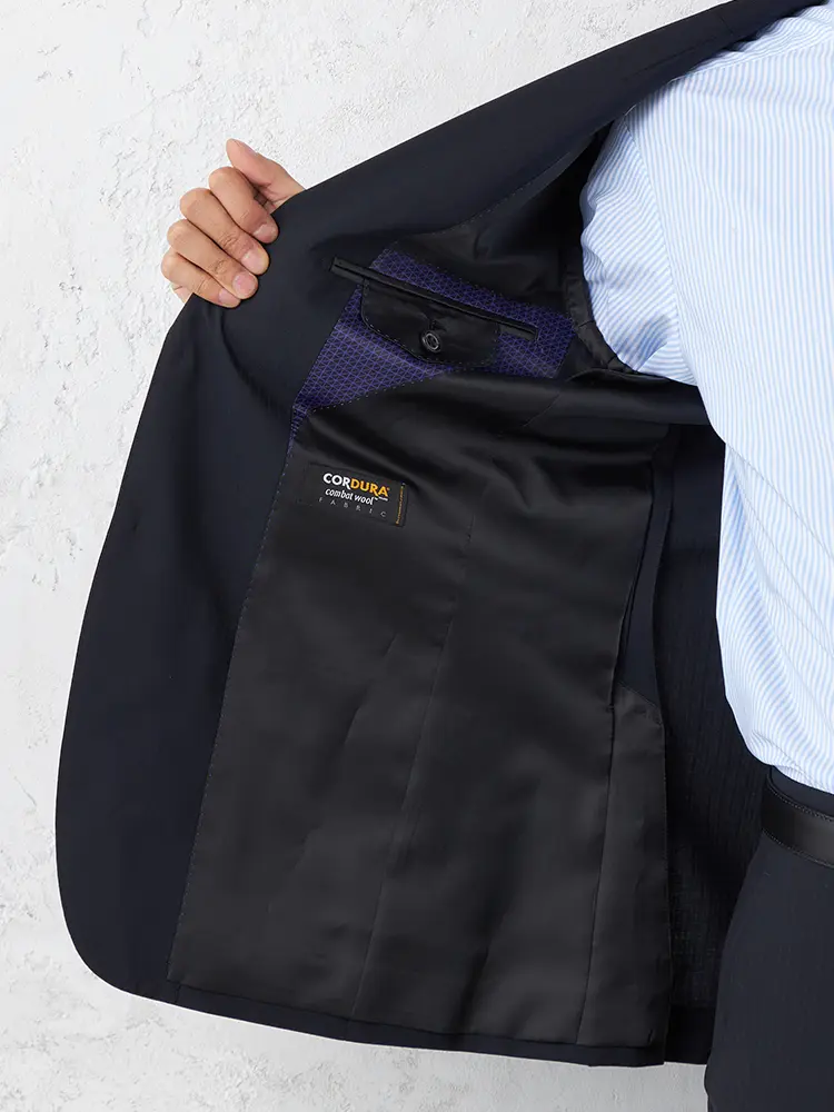 ネイビーの清潔感に加え、高耐久なコーデュラ混ポリエステル×ウール素材を採用しました。