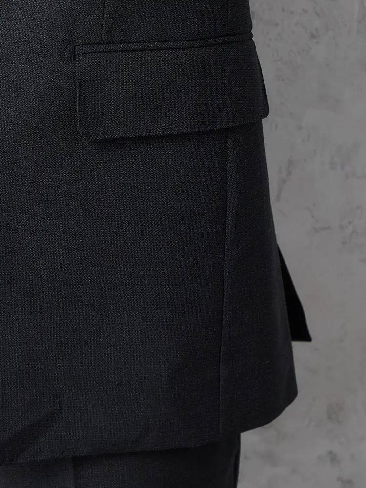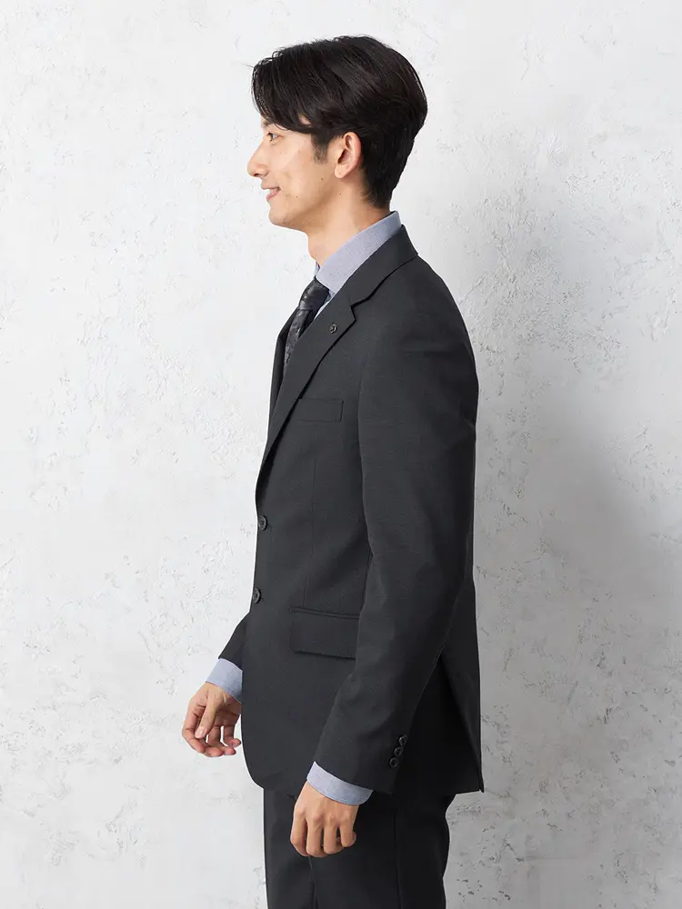 動きやすいサイドベンツと背抜き仕立てで軽やかに仕上げました。
