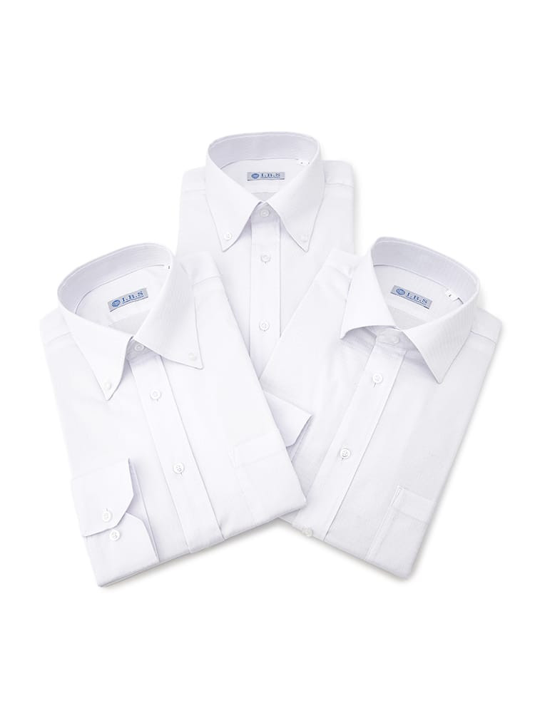 【3点/Smart Pick!】 長袖ワイシャツ ホワイト ベーシックデザイン Aセット(セミワイド1枚ボタンダウン2枚)