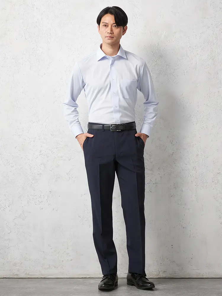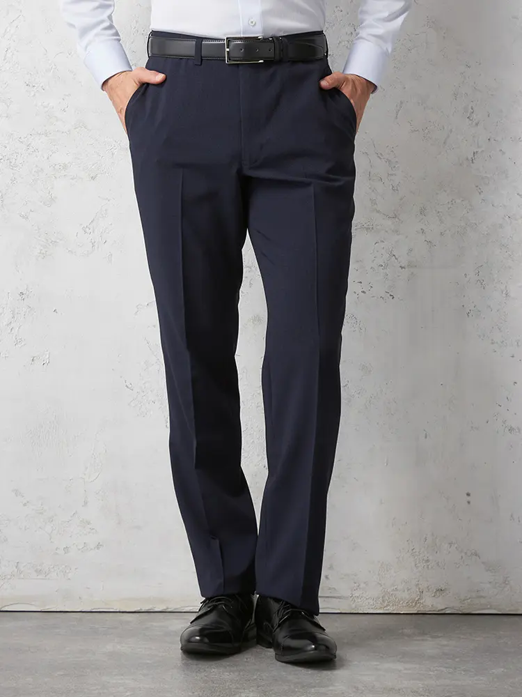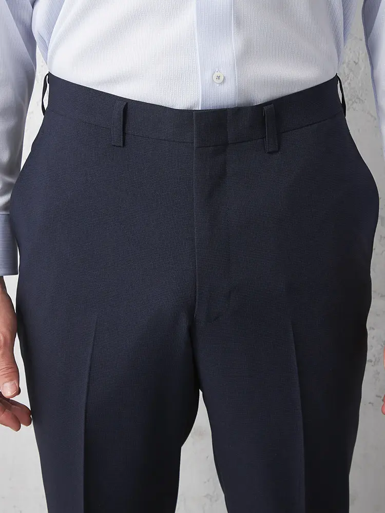 【セットアップ対応】パンツ紺無地ウォッシャブルノータック通年