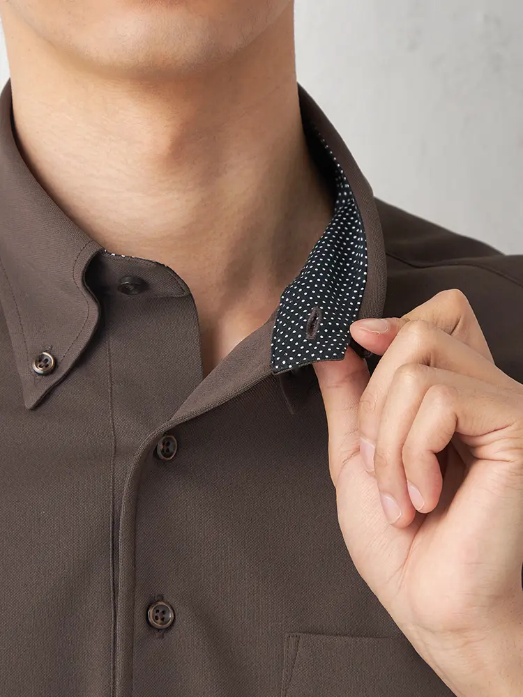 アイロン不要の完全ノーアイロン仕様に加え、ストレッチや吸汗速乾、抗菌加工を完備。