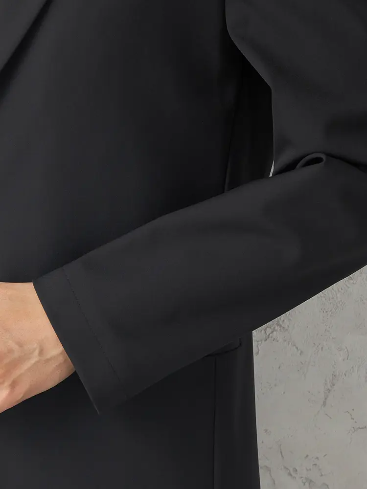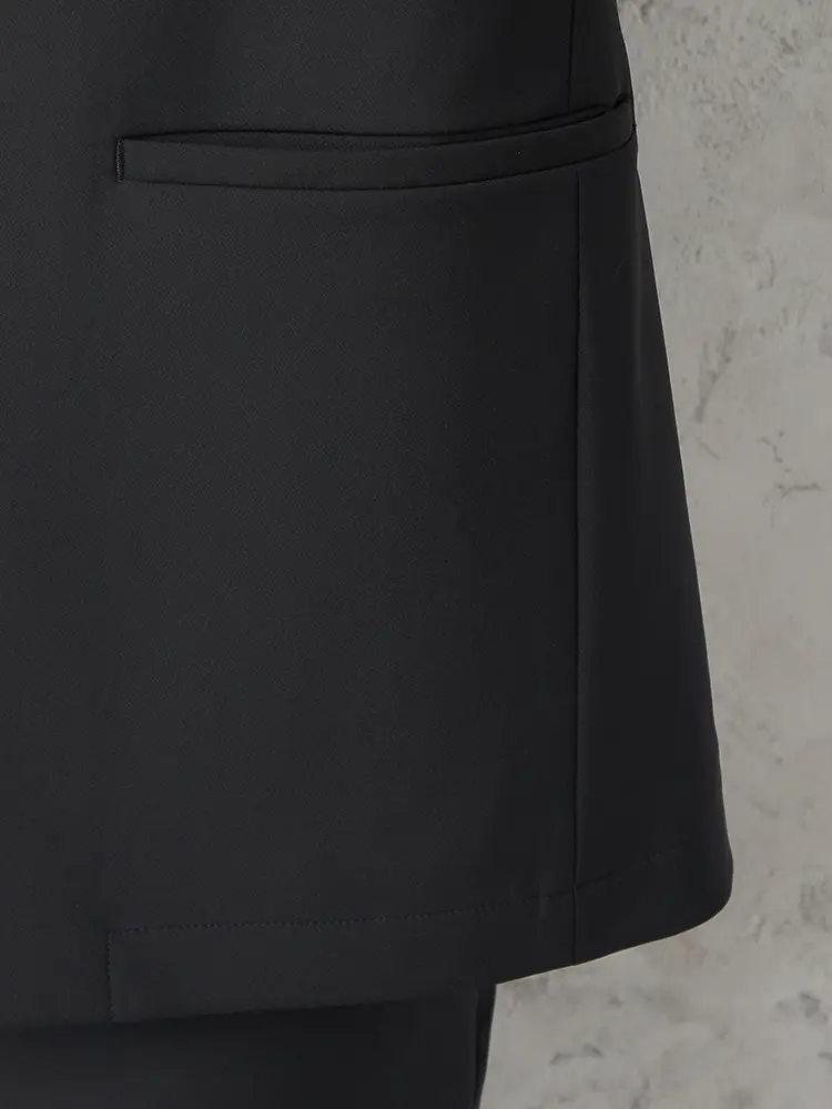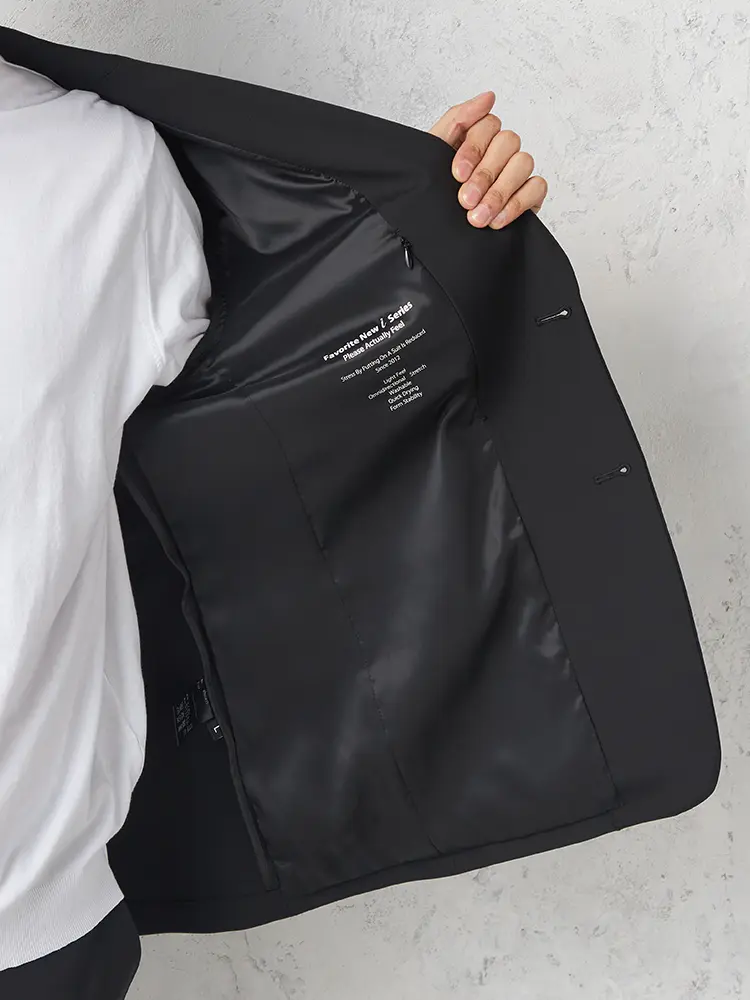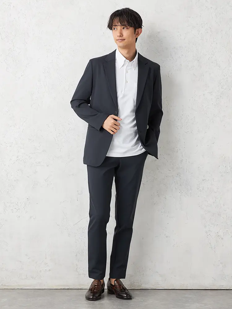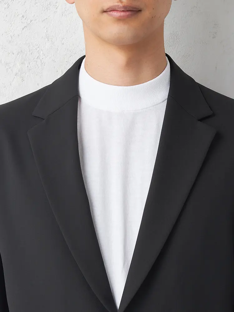 ハイストレッチ素材を使用し、軽量な背抜き仕立てとセンターベントで暑い日も快適。