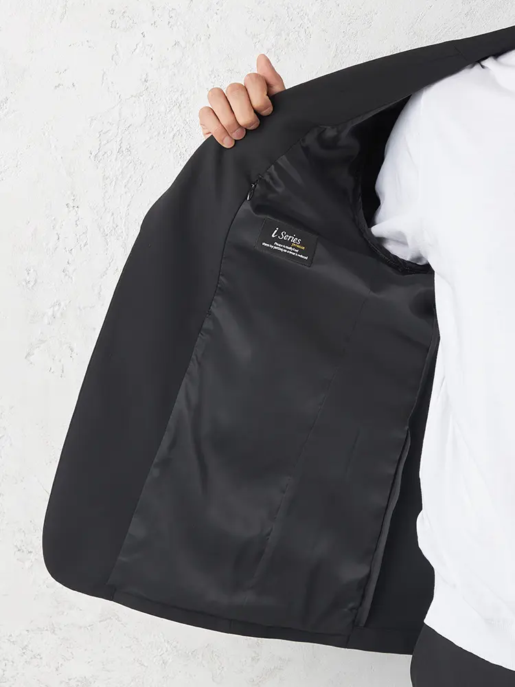 【i−Jacket】 アイシリーズ セットアップジャケット 2つボタン 形態安定 ストレッチ 軽量 ウォッシャブル 通年(ブラック)