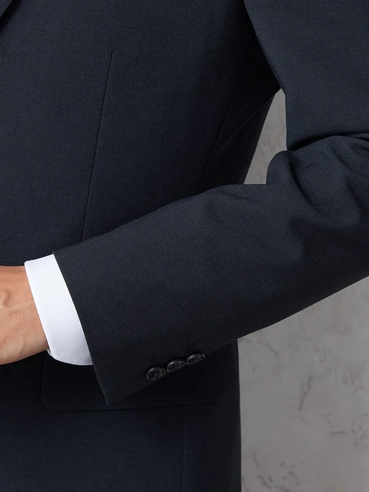 ジャケットはスタンダードな2つボタン×ノッチドラペルを採用
