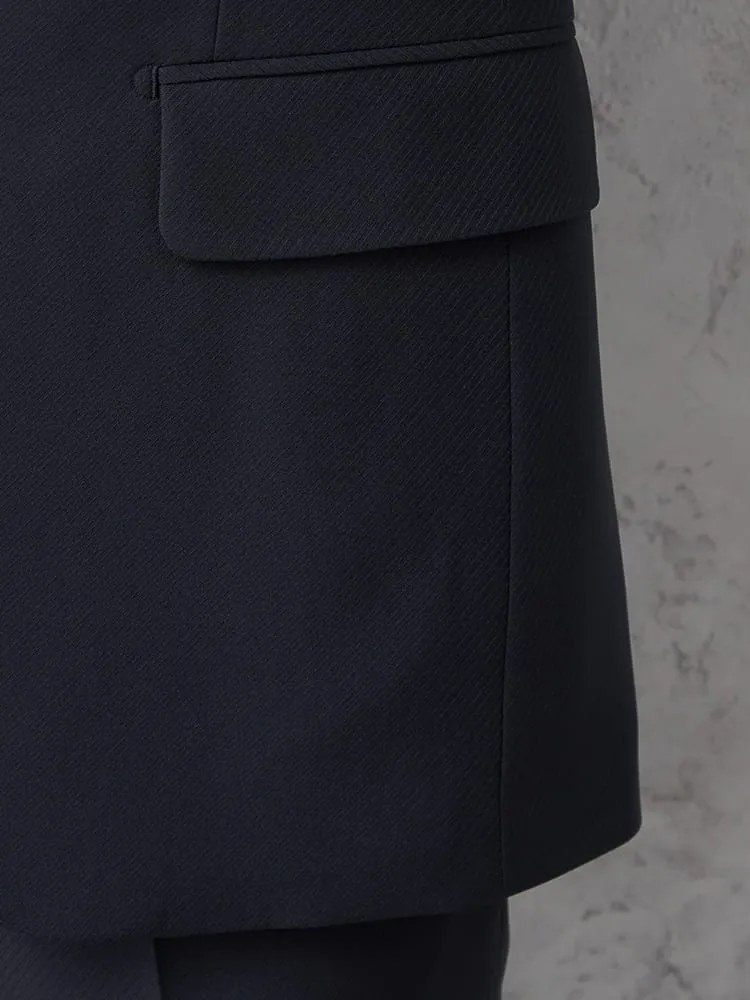 切り込みが1本のセンターベントデザインです。細身でスッキリとしたシルエットが特徴で、快適な着心地を提供します