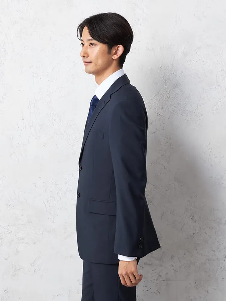 切り込みが1本のセンターベントデザインです。細身でスッキリとしたシルエットが特徴で、快適な着心地を提供します