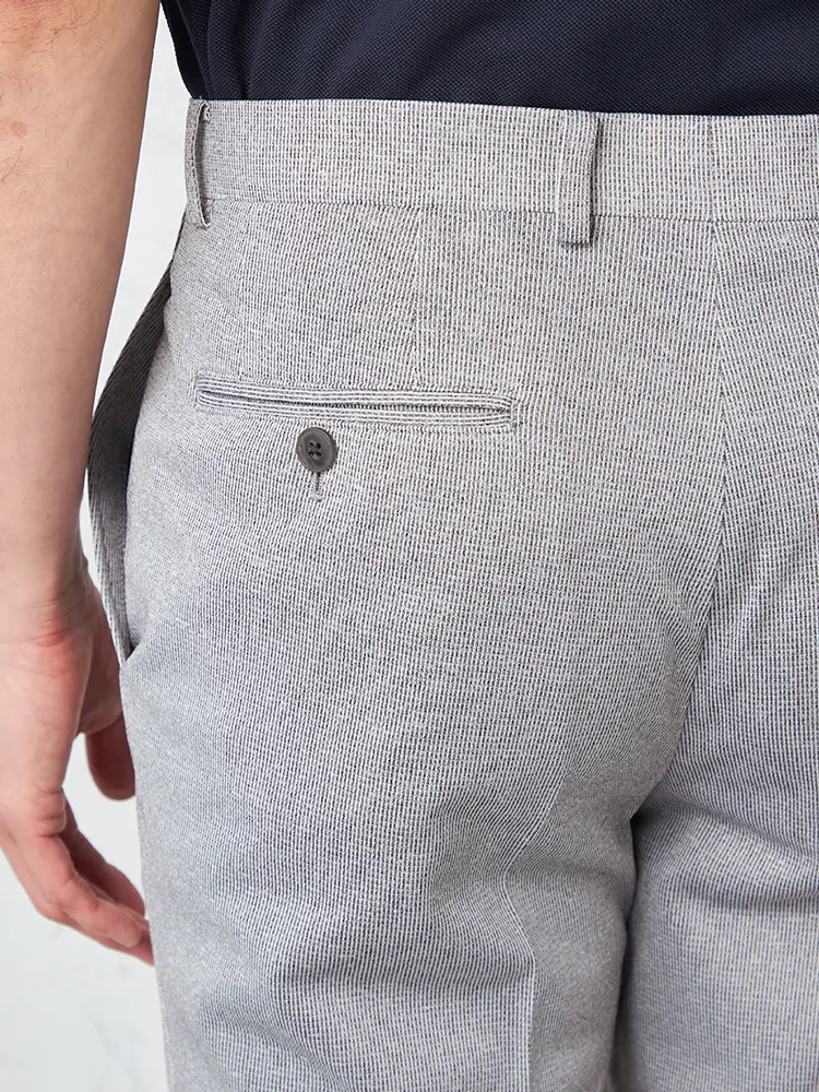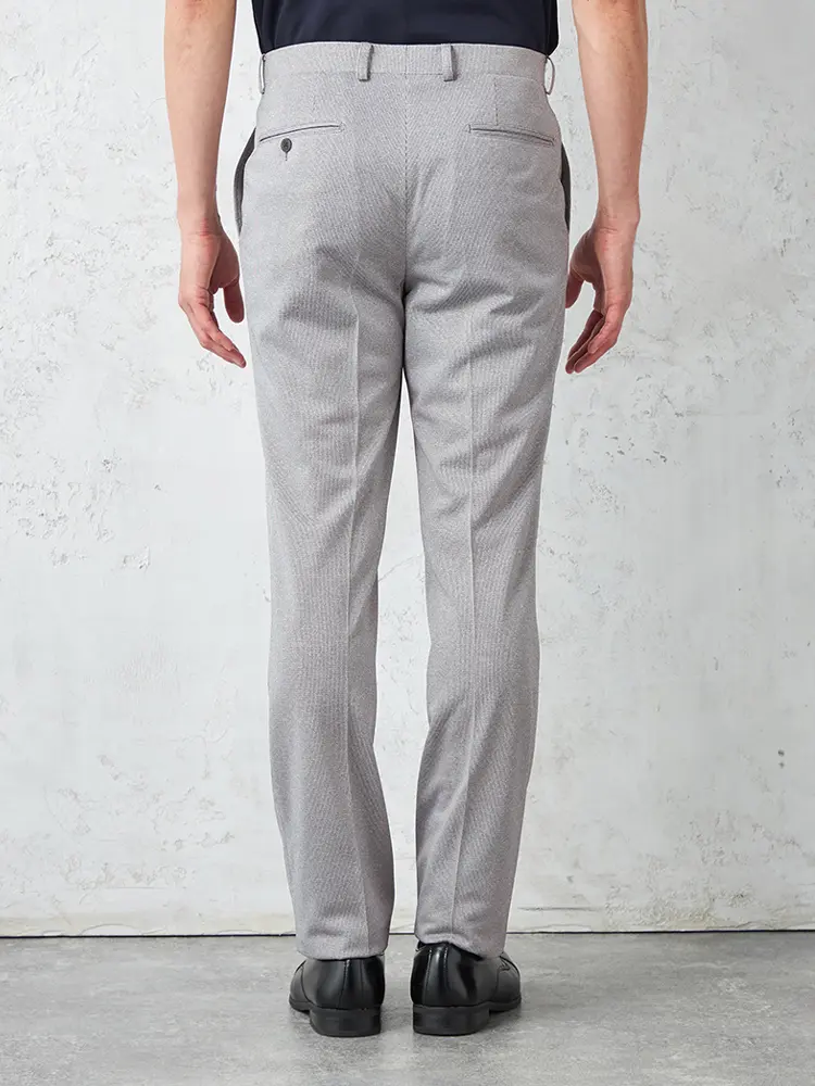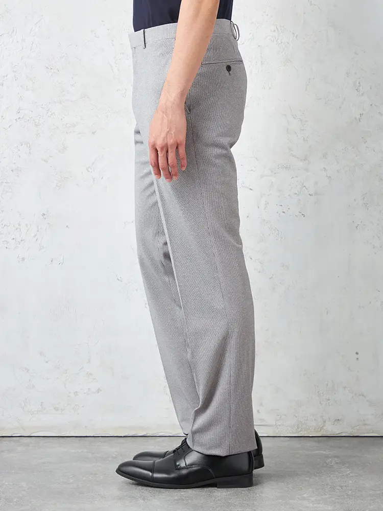 腰回りはノータックですっきり仕上げ、ビジネスからカジュアルまで幅広く対応。