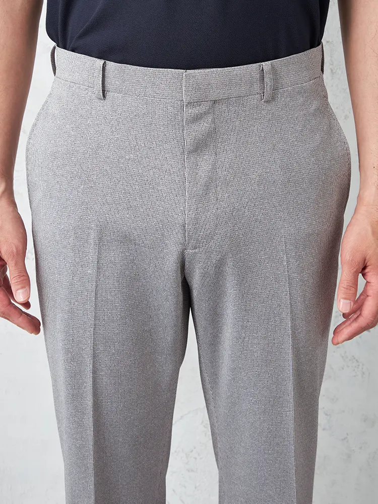 【4wayストレッチ】パンツノータックドライパンツ膝あて清涼裏地シャドウストライプnero春夏【スリムデザイン】