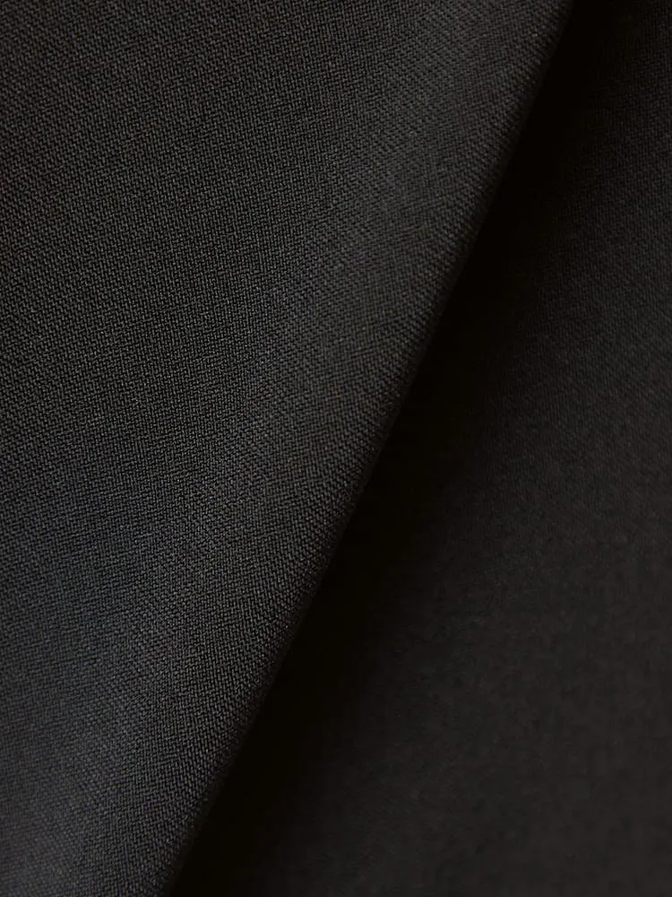 パンツの腰回りに生地の折り込みがなく、スッキリとしたシルエットを実現します。シンプルで洗練された印象を与え、すっきりとした着こなしが可能です。