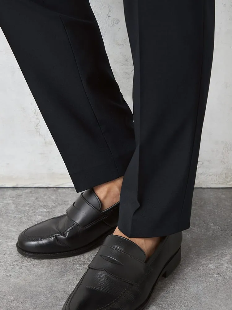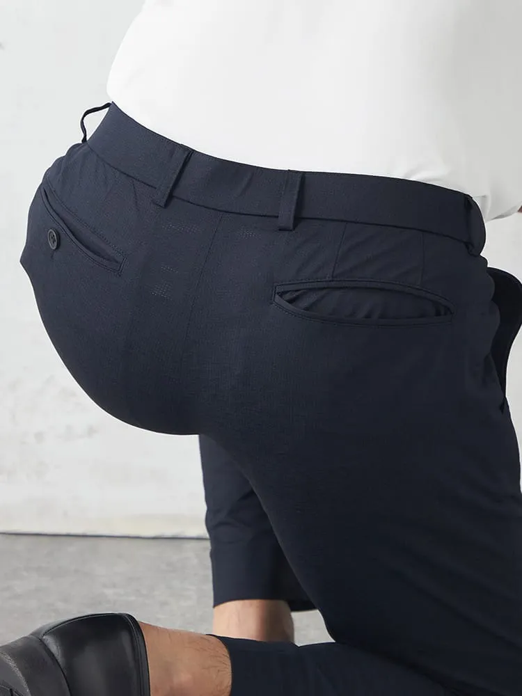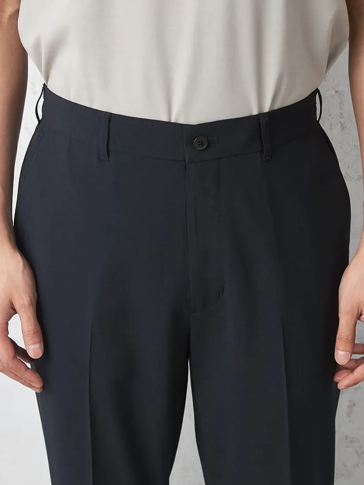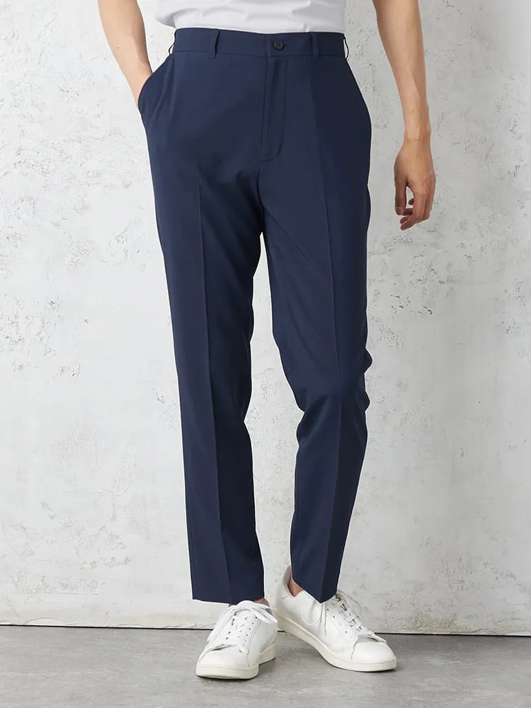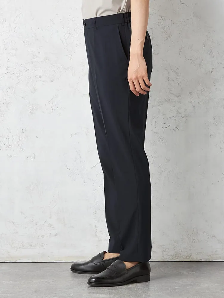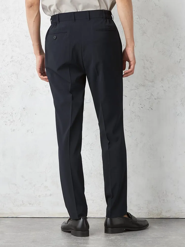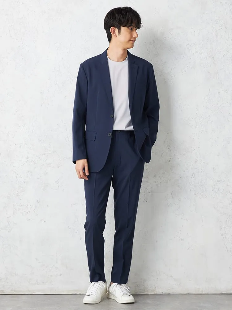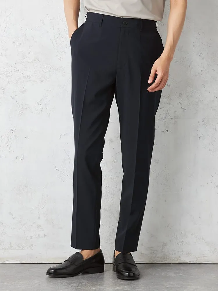 【AIR SUIT】裾上げ済み セットアップ スラックス パンツ ノータック 防シワ(イージーケア) ストレッチ 通年 吸水速乾 UVカット 春夏(ネイビー)